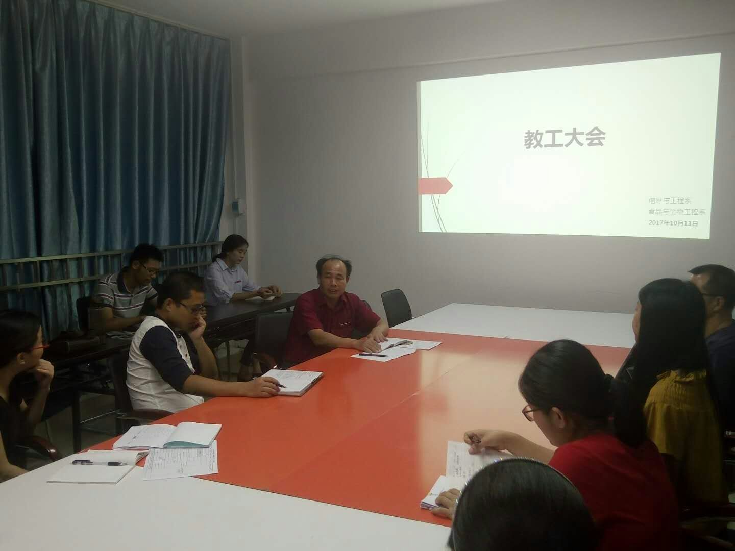 10月13日下午🍏,我系召开了预评估整改落实及迎接南平市文明学校检查教工大会🧔🏽‍♂️👨‍🏭,系主任张金良主持会议。张主任对我院二轮评估前的预评估整改方案进行了详细认真的解读,同时对二轮评估下一环节冲刺阶段的工作进行了周密部署🏌️,对课程说课及专业剖析作了重点安排🎶,要求全体教师要按学院及我系的时间节点保质保量完成每一项任务。