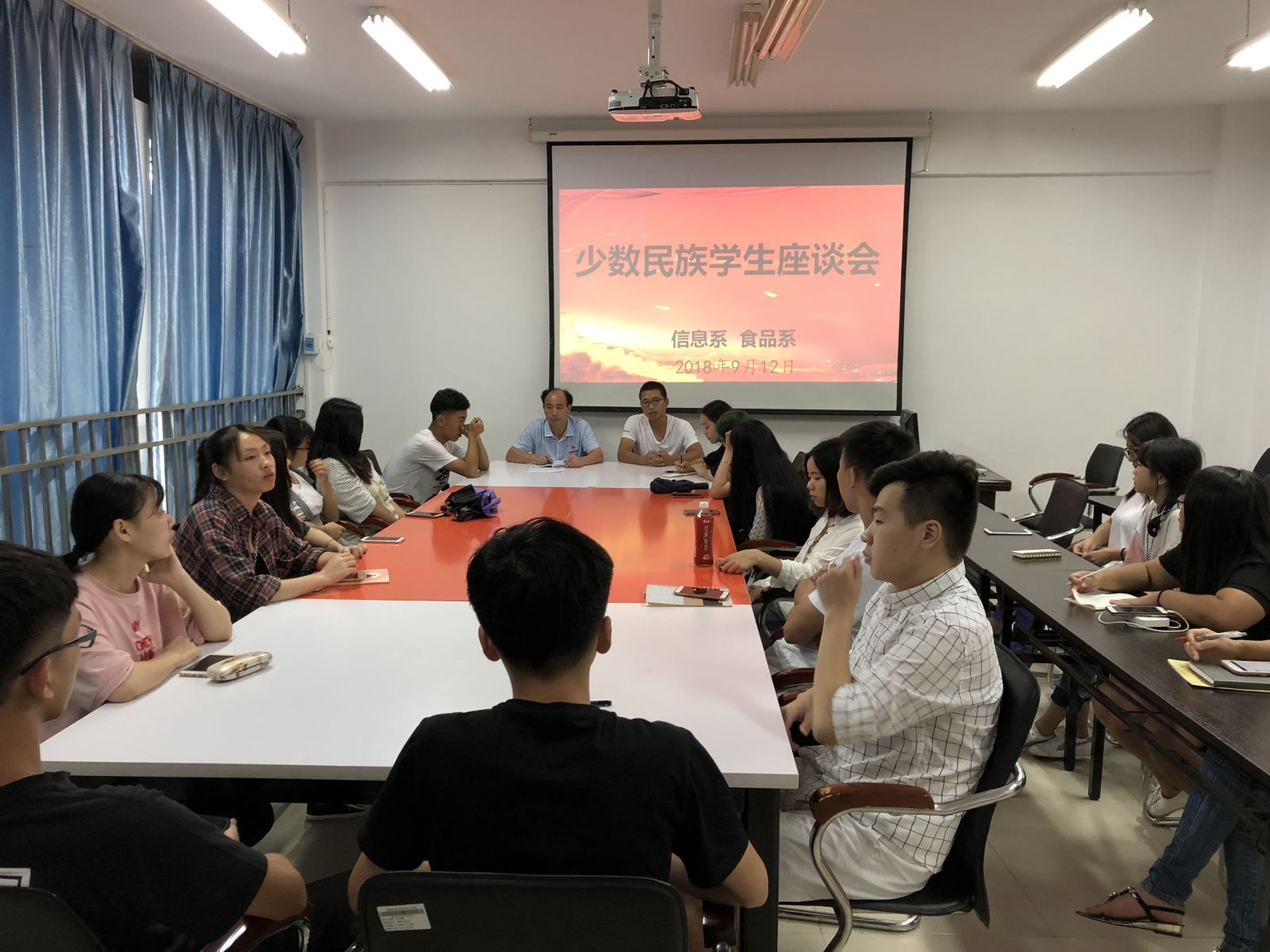 为切实做好少数民族学生教育管理服务工作🤙🏿,促进学生健康成长成才↖️,帮助同学们解决在学习和生活等方面存在的实际困难和具体问题,9月12日中午,食品系和信息系召开了少数民族学生座谈会,系党总支委员🚴、学生科全体人员、学生会干部及16名少数民族学生参加了会议👨🏻🏭。