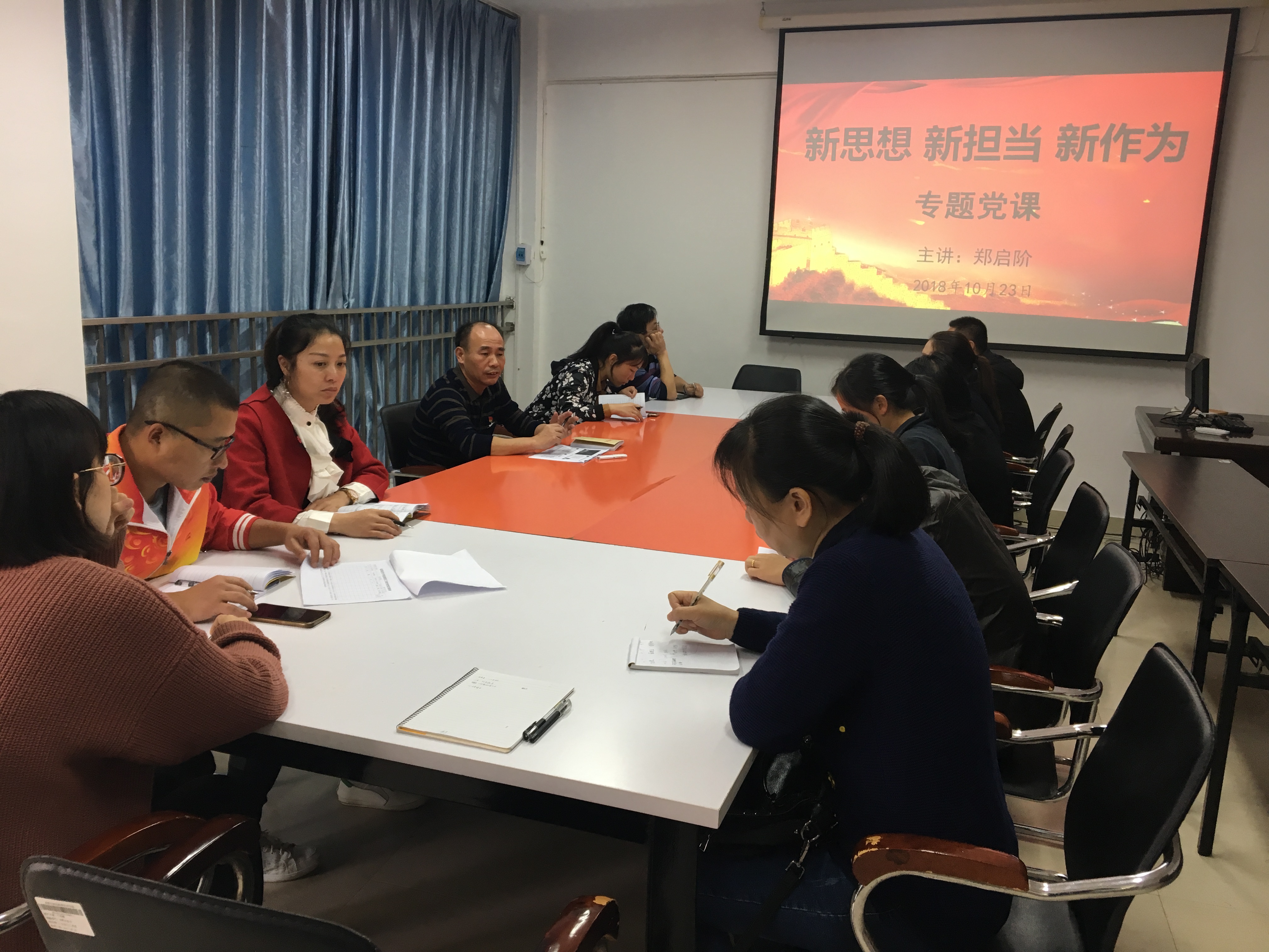 根据系党总支的工作部署,10月23日下午,信息系和食品系党总支副书记郑启阶为全体党员上了一堂题为《新思想、新担当、新作为》的专题党课。