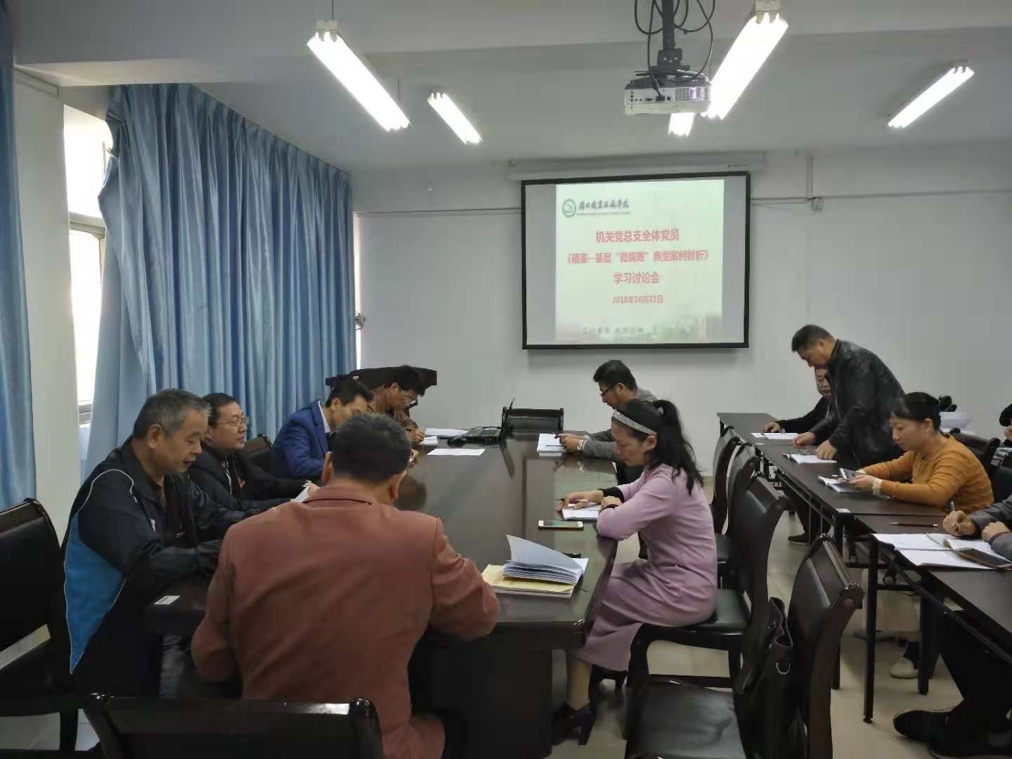 2018年10月31日上午,机关党总支组织开展《镜鉴——基层“微腐败”典型案例剖析》专题学习讨论会,用典型案例开展警示教育,以身边事教育身边人,以案为鉴。通过基层“微腐败”典型案例的学习,对全体党员的思想触动很大,在典型案例中,有些人利用职权腐败,无视党纪国法,无敬畏之心,违纪违法多重交织,对纪律规定无所顾忌,这些微腐败表现情形花样繁多。在学习讨论中广大党员表示,要深刻认识微腐败的严重危害性,自觉抵制微腐败,做到知敬畏、存戒惧、守底线。要深入学习贯彻习近平新时代中国特色社会主义思想和党的十九大精神,加强理想信念、纪律观念、党性锻炼,对党忠诚,不断增强政治定力、纪律定力、道德定力、抵腐定力。大家表示,将结合各自工作岗位,认真履行“一岗双责”,共同聚力推进机关党风廉政建设和反腐败工作,切实推进全面从严治党向纵深发展。