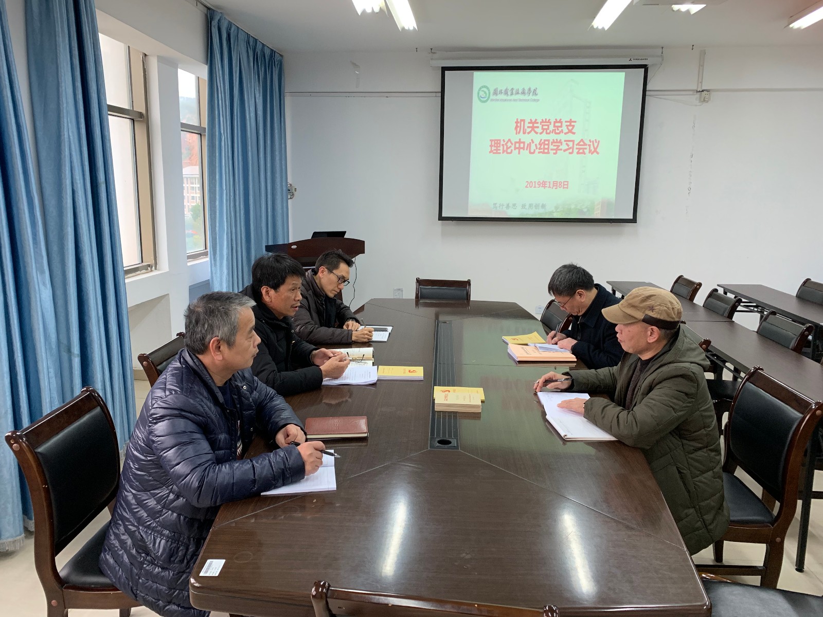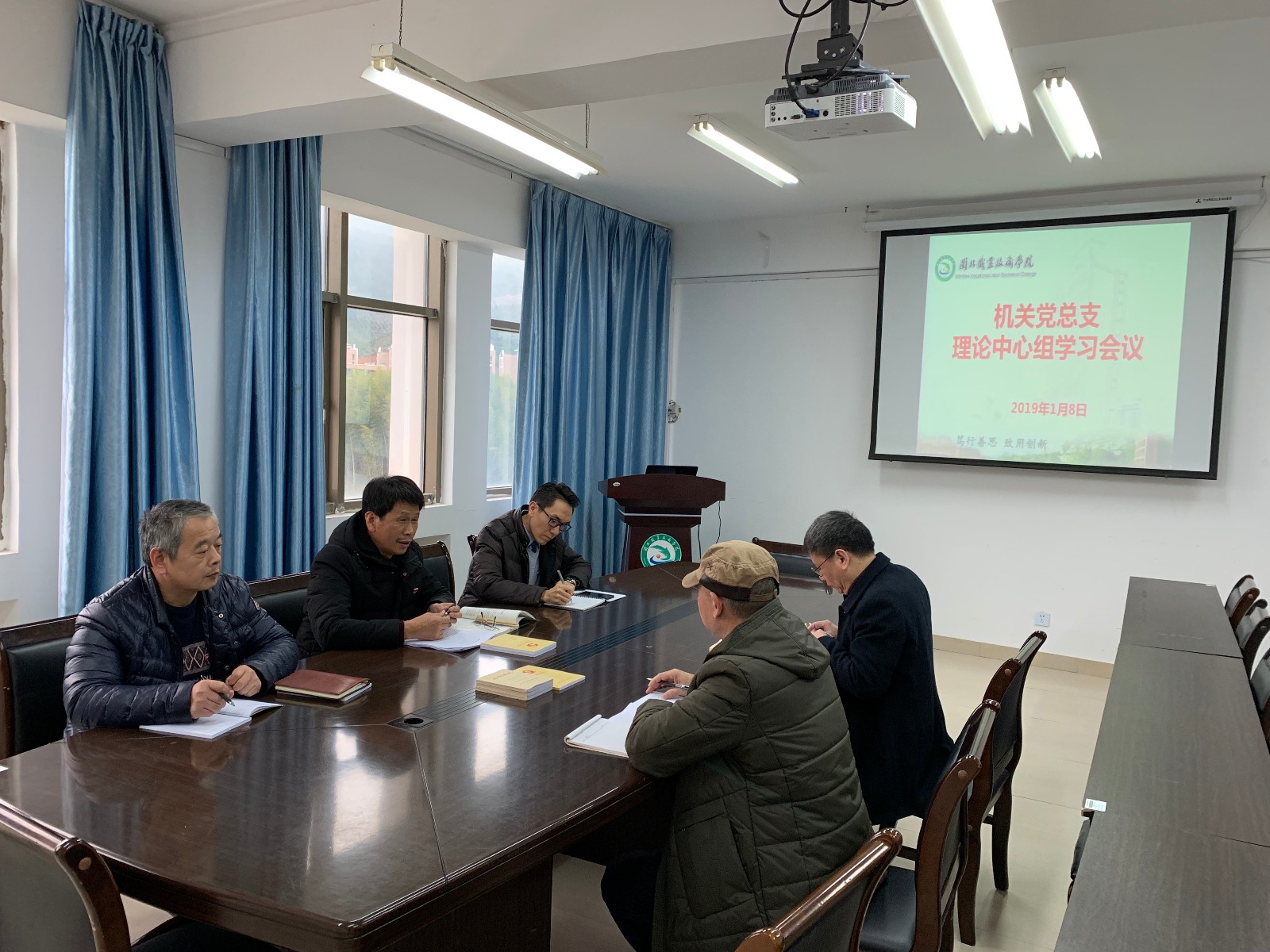 2019年1月8日下午🙆🏼,学院机关党总支在行政楼五楼会议室召开理论中心组会议,专题学习《习近平新时代中国特色社会主义思想三十讲》🧑🦽,机关党总支书记叶常明同志作学习《习近平新时代中国特色社会主义思想三十讲》第九讲“将全面深化改革进行到底”主题发言☮️,他的发言题目是《在实际工作中如何发扬钉钉子精神》🧎。与会党总支委员郑定华、刘林、王金土、吴兴旺四位委员分别结合各自岗位✫,就如何深刻领会和灵活运用钉钉子精神,将工作落到实处、取得成效作学习交流发言。