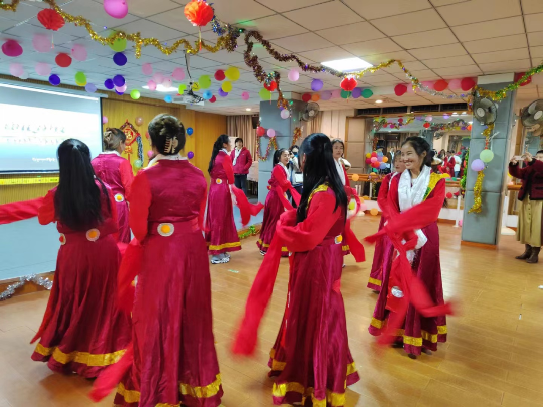 活动现场,师生们发挥文艺特长,表演了精彩的节目。藏族同学们手捧青稞酒,情不自禁地跳起了传统的锅庄舞,唱起了民族歌曲,老师们也伴随音乐一同起舞👨🏽🍳,将活动气氛推向高潮。