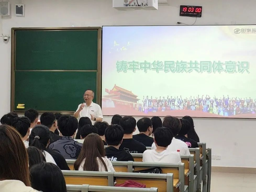 5月7日🏹,学院党委书记张雄为信息系学生讲授以“铸牢中华民族共同体意识”为题的思政课🧕🏿。