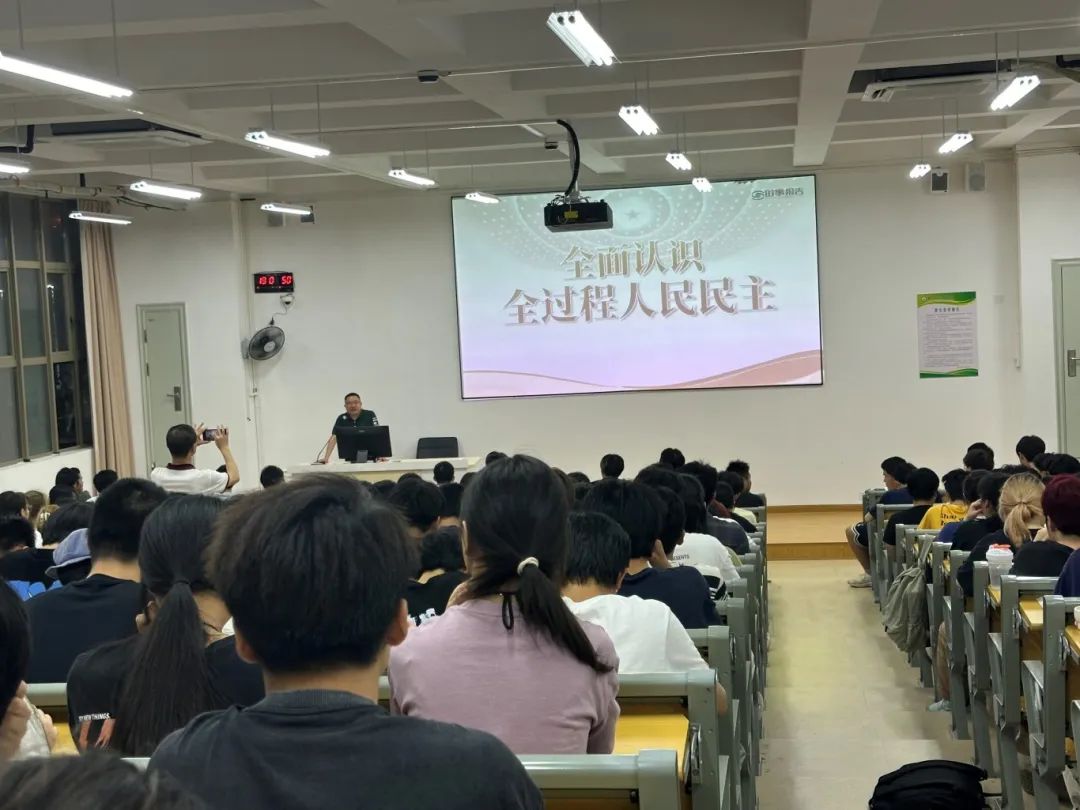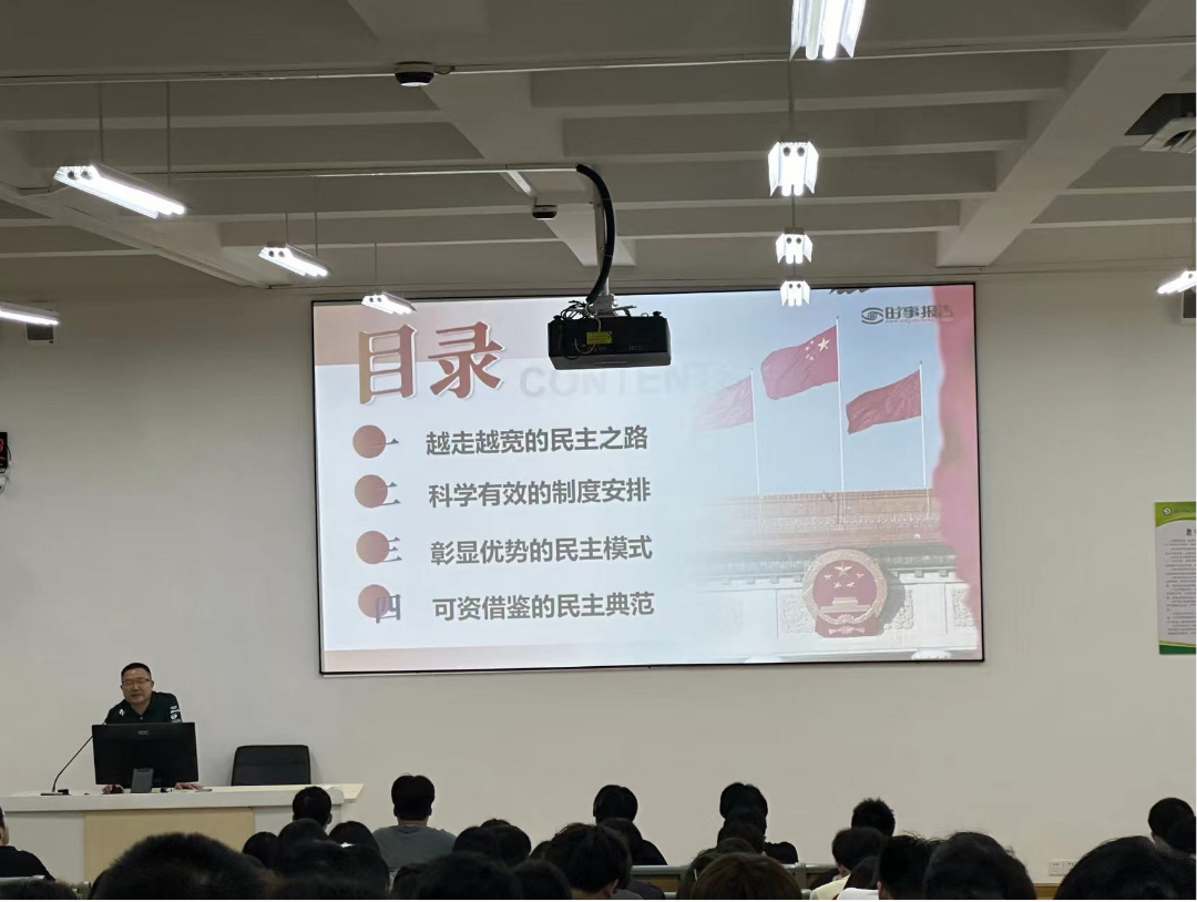 4月28日🏂🏻,学院党委副书记、组织部(统战部)部长蔡军为设计系学生讲授以“全面认识全过程人民民主”为题的思政课🧏🏼。