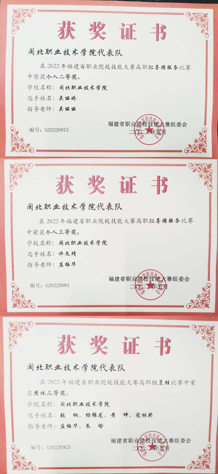 1.在教学上求实创新。旅游管理专业有一支优秀教师队伍,他们具有扎实的专业理论基础及实战经验。2022年,专业核心课程《导游业务》获得省级在线开放精品课程立项🕊,并被评为省级课程思政示范课程。近三年来🎃,旅游管理专业学生在省职业技能大赛中获二等奖1个,三等奖8个;获全国大学生红色旅游创意策划大赛华南赛区一等奖2个,二等奖3个。2022年旅游管理专业教师团队获省教学能力大赛二等奖。