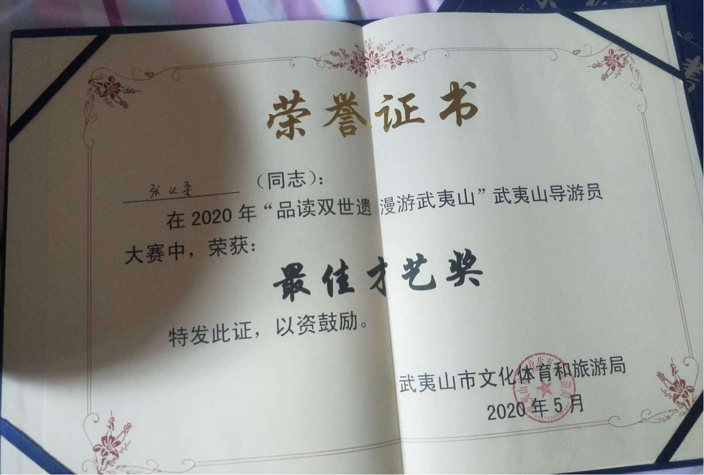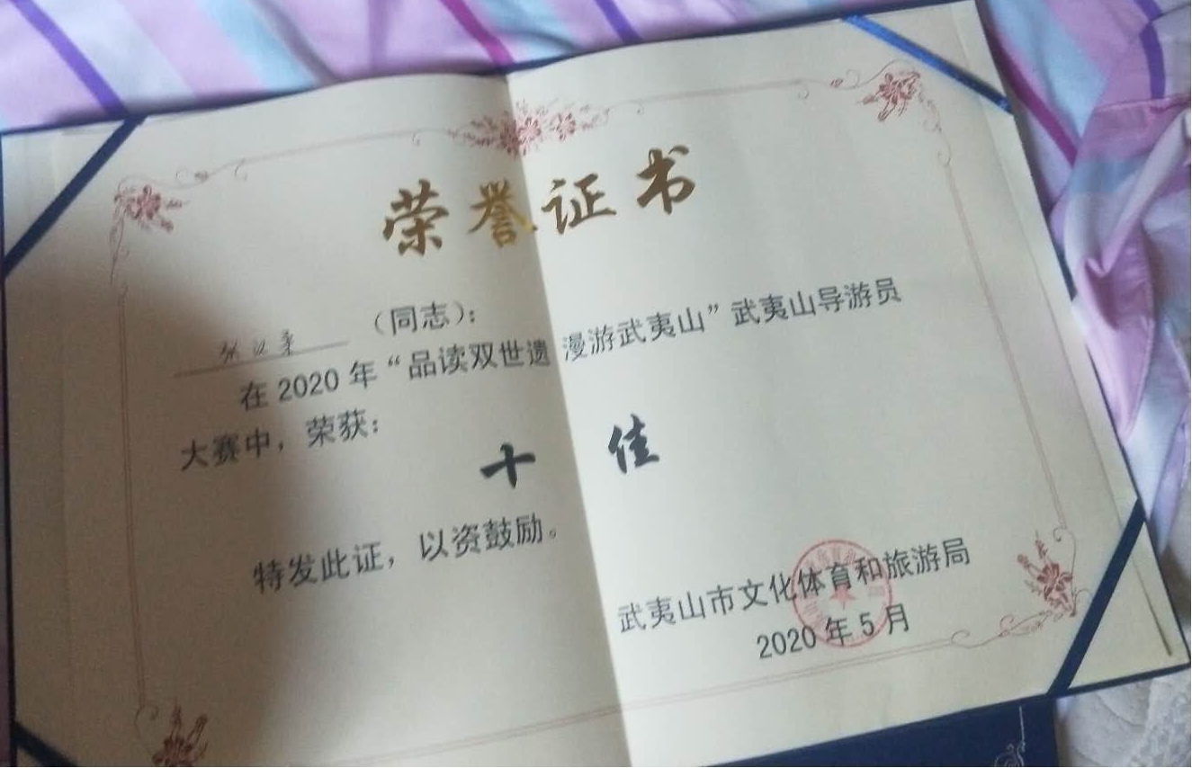旅游管理专业学生荣获武夷山导游大赛“十佳”称号