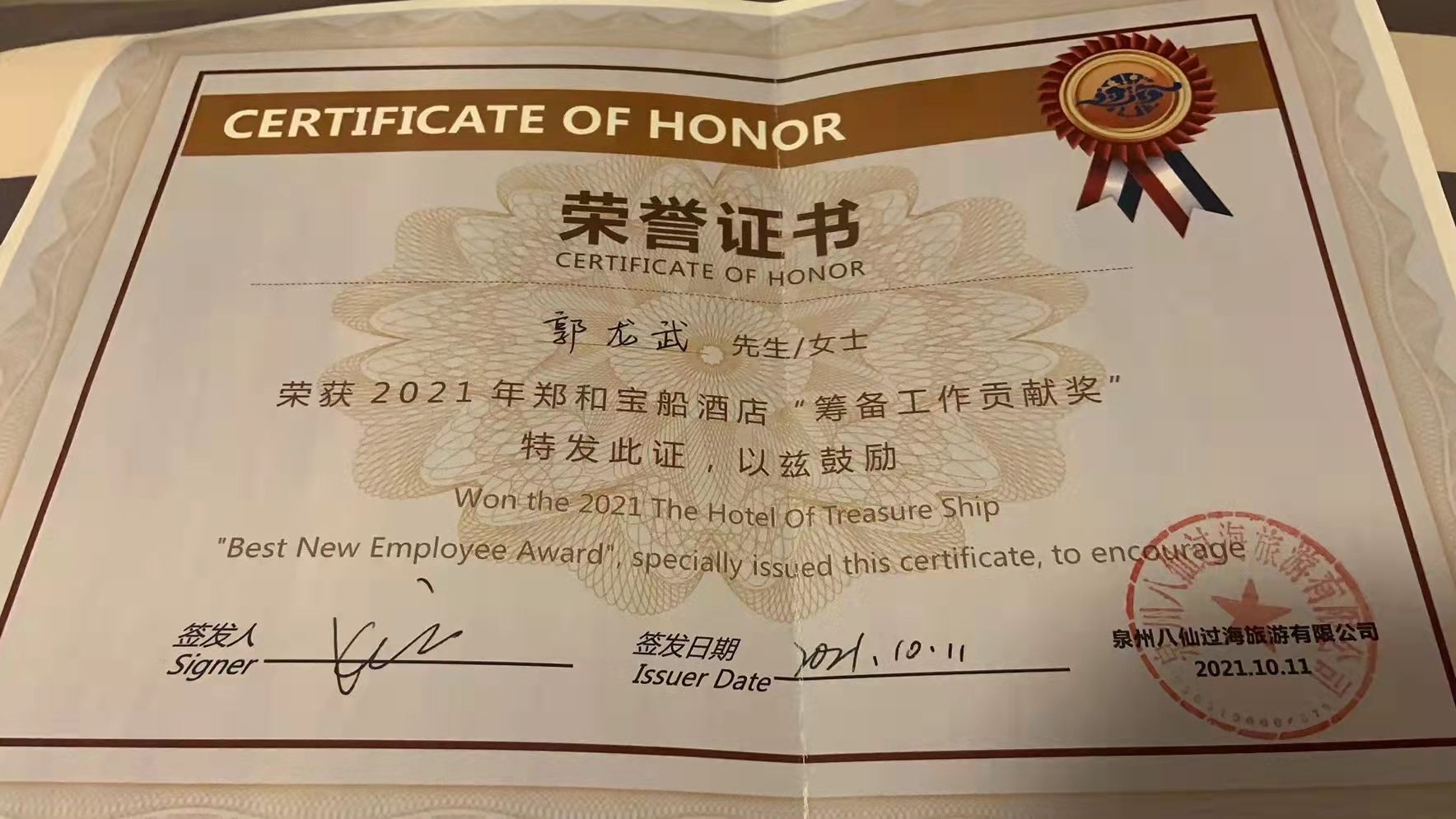 八仙过海旅游集团大力表扬我校实习生,该集团2021年共招170多名实习生,于下半年评出7名“筹备工作贡献奖”♥︎👩🏻🏫,我专业实习生共有3名荣获该荣誉,分别是王家荣、郭龙武🧢、刘苏敏同学。企业高度认可旅游专业人才培养模式,认为我专业实习生具备吃苦耐劳、勤学苦干的精神,赞扬我校领导🧑🏻🦼➡️、教师对学生的人文关怀精神。
