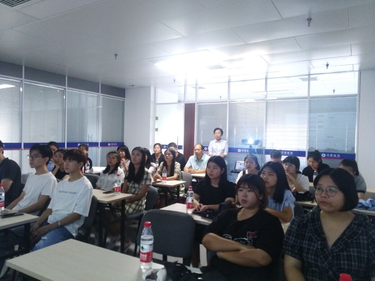 2019年9月30日上午9:00在南平兴业证券公司举办了管理系财务管理专业毕业生招聘宣讲会,南平兴业证券公司人事经理胡总为同学做了简单的介绍🤙🏼,兴业证券南平分公司成立于1993年🦢,下辖南平👨🏽🦲、建瓯🕘、武夷山🖼、邵武✉️♧、顺昌、光泽、建阳、浦城、政和9家营业部🍶👈🏽,是目前闽北地区规模最大、业务品种最齐全、服务品牌最佳的专业证券经营机构。主营行业为资本市场服务⚽️,服务领域为许可经营项目:证券经纪,证券投资咨询,与证券交易、证券投资活动有关的财务顾问,证券承销与保荐业务项目的推介与承揽,融资融券🫅🏿,证券投资基金代销,为期货公司提供中间介绍业务👰🏼♂️,代销金融产品等。