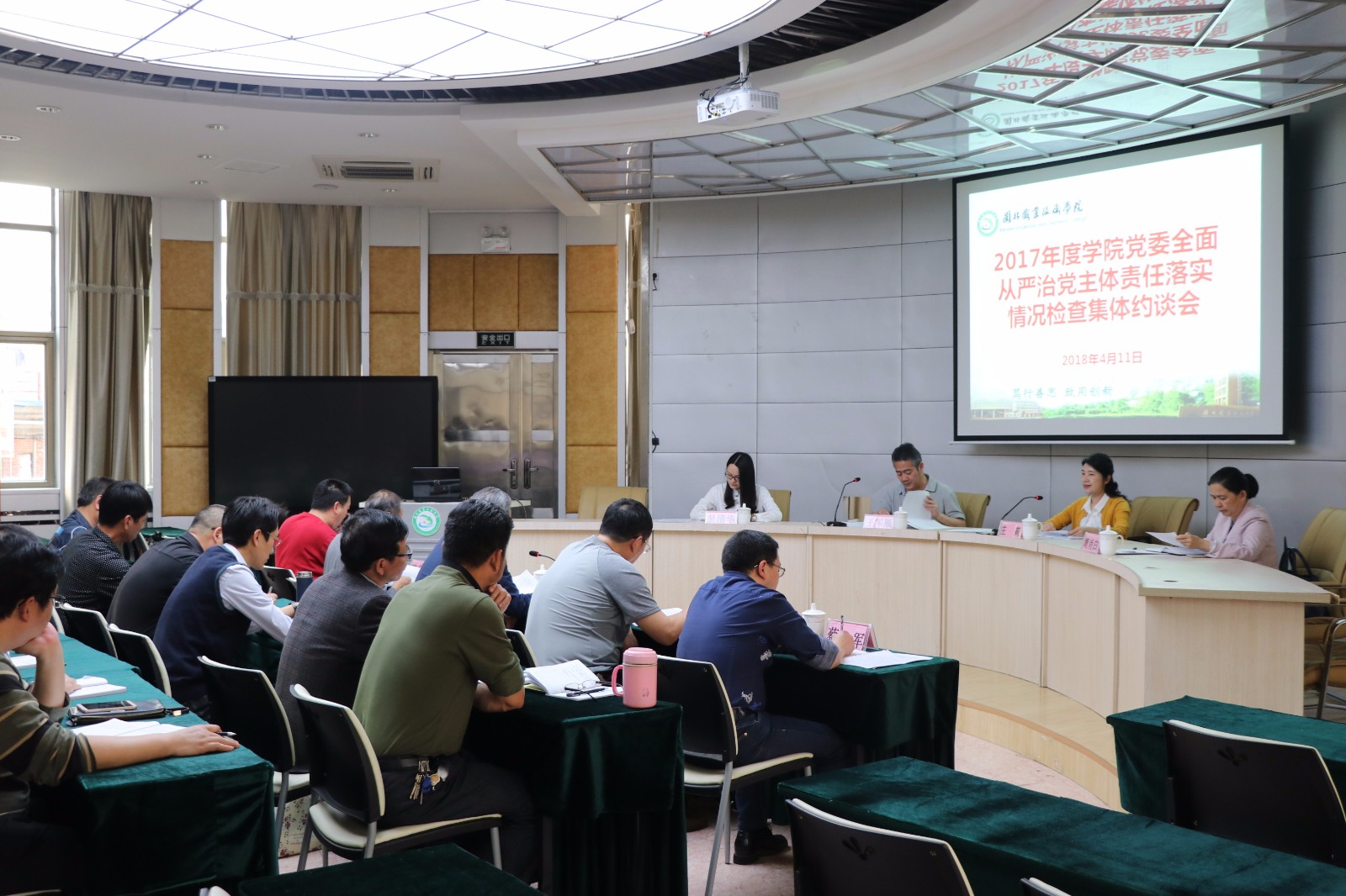 会上,院党委书记高建富汇报了学院2017年度落实全面从严治党主体责任情况;检查组副组长、市教育局调研员王军雁代表检查组向学院反馈了问题清单和问责建议。市委常委、统战部部长、检查组组长庄莉讲话。她强调:一要坚定方向,把政治建设摆在首位;二要敢于担当,压紧压实“两个责任”;三要改进作风,切实增强师生的获得感;四要立行立改,狠抓整改工作落实。随后, 检查组向学院党委移交“问题清单”和“问责建议”。