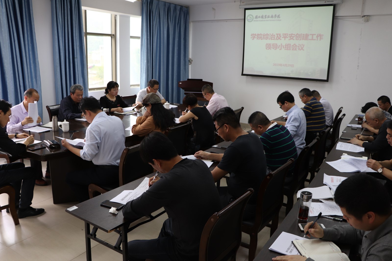 4月29日下午,学院召开综治及平安创建工作领导小组会议。会议由党委书记高建富主持。会上,党委副书记陶金辉传达了上级有关文件精神,并对“平安校园”等级创建工作及下一阶段工作进行了部署。