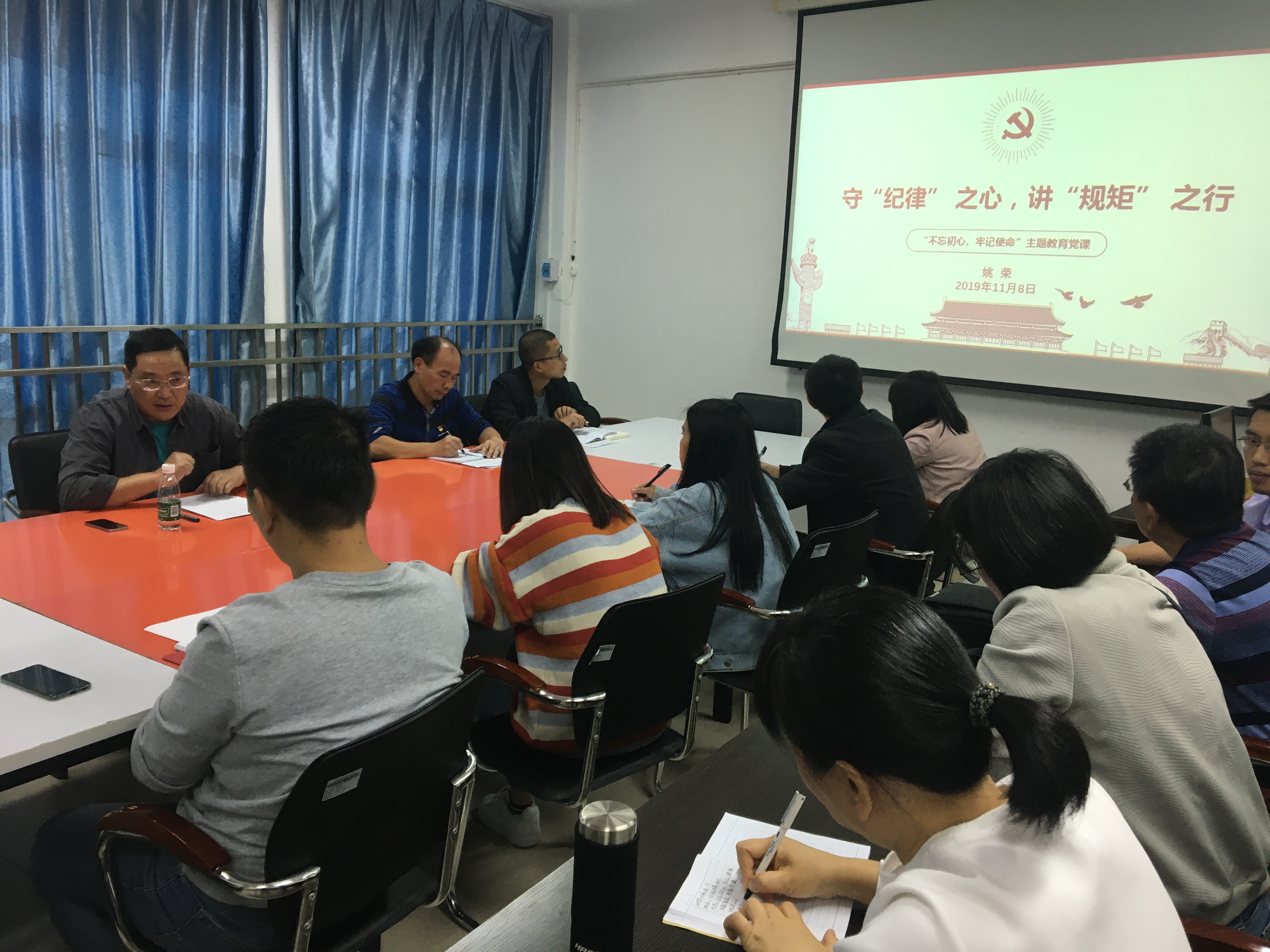 11月8日下午,院纪委书记姚荣同志到信息系和食品系联合党总支上“不忘初心、牢记使命”主题教育专题党课。信息系、食品系全体教师参加了会议。