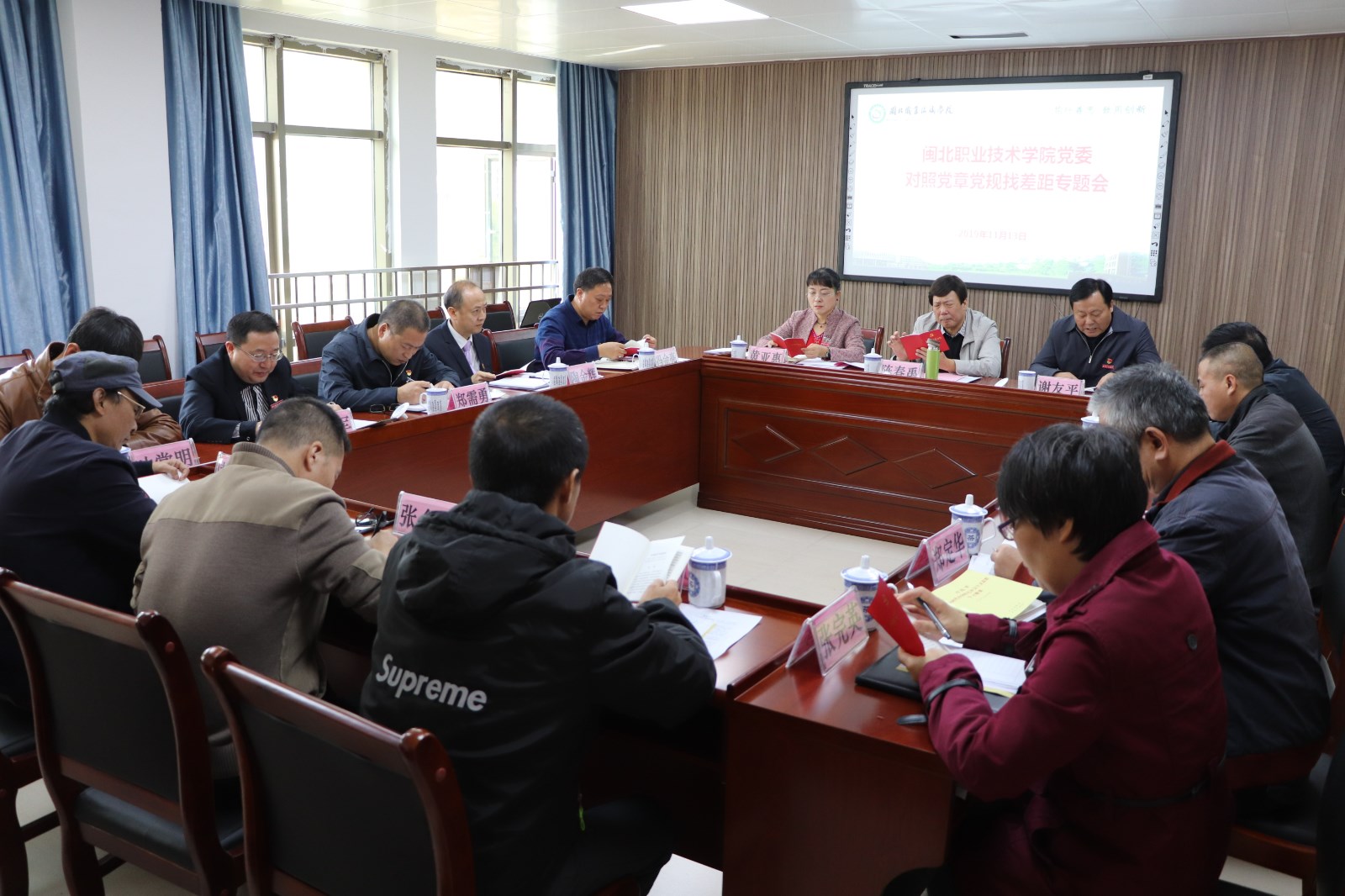 11月13日上午,学院党委召开领导班子成员对照党章党规找差距专题会。学院党政领导班子成员、副处级党员领导干部、各党总支常务副书记、学院主题教育领导小组办公室有关同志参加会议。省委第7巡回指导组陈春禹副组长、王永盛科长,市委第10巡回指导组冯金亮副组长、郑建福主任以及市主题教育办吴建平等五位同志到会指导。
