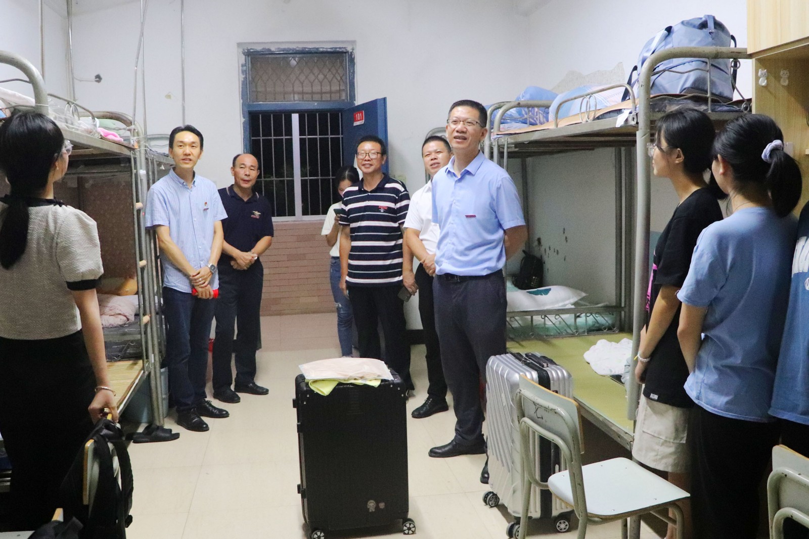 9月9日新生报到当天,我院党委副书记、院长叶世森,党委副书记陶金辉率办公室、学生工作处负责人和各系党总支书记、学生科科长、部分辅导员一同深入学生宿舍走访看望2021级新生,向新同学们表示热烈的欢迎。
