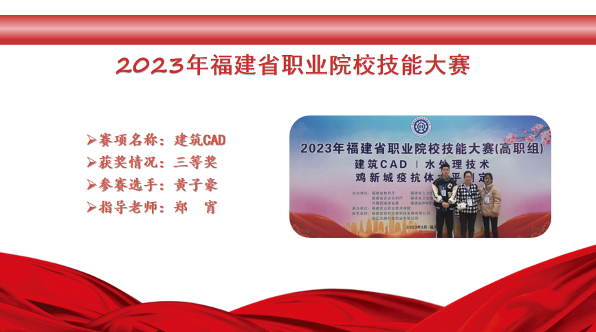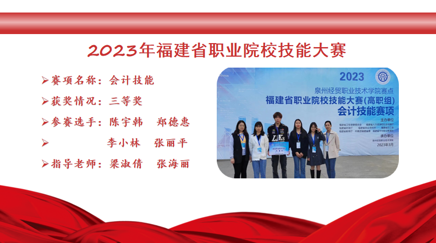 2023年3月6日-3月30日由省教育厅、省人保厅🐩、省财政厅等八部委联合主办的福建省职业院校技能大赛如期举行,我校共25个赛项参加了本次技能大赛。