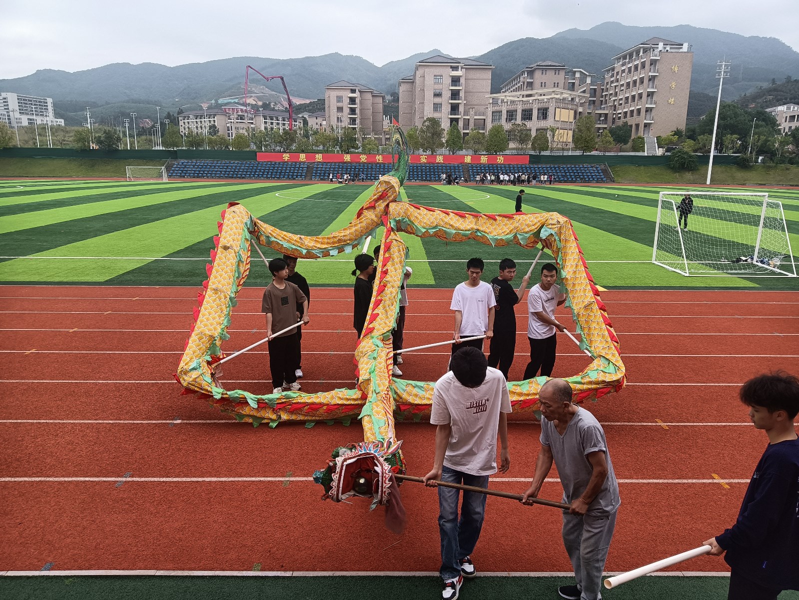 黄毓顺还多次入校进行非遗文化舞龙、舞狮技艺的现场指导,通过解说技术要领、亲自示范等方式向学生详细剖析动作技巧。