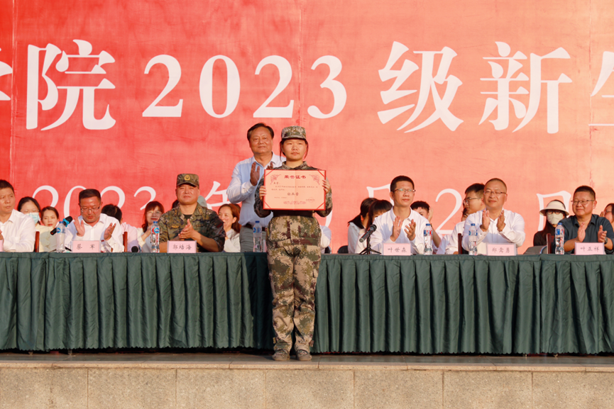 叶世森代表学院,向为这次军训提供支持和帮助的武警南平支队表示衷心的感谢!向付出辛勤汗水的军训教官们致以崇高的敬意!向服务在一线的辅导员及工作人员表示诚挚的谢意!向积极参加军训并胜利完成军训任务的2023级同学们致以亲切的问候。