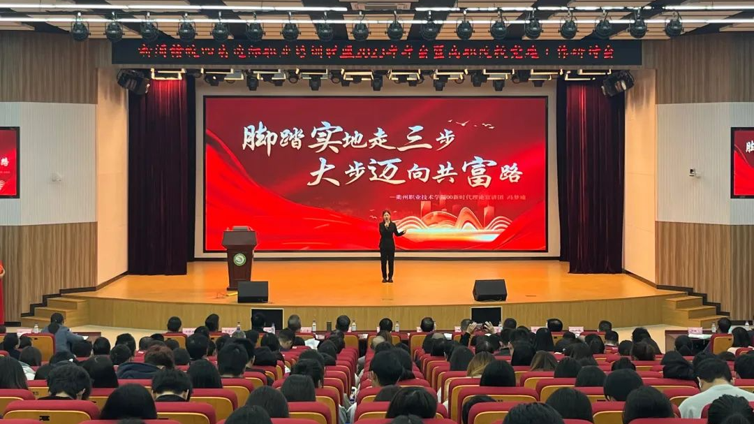 彩神招生就业处副处长(主持工作)詹永珍作“以职业教育赋能乡村振兴”成果汇报。