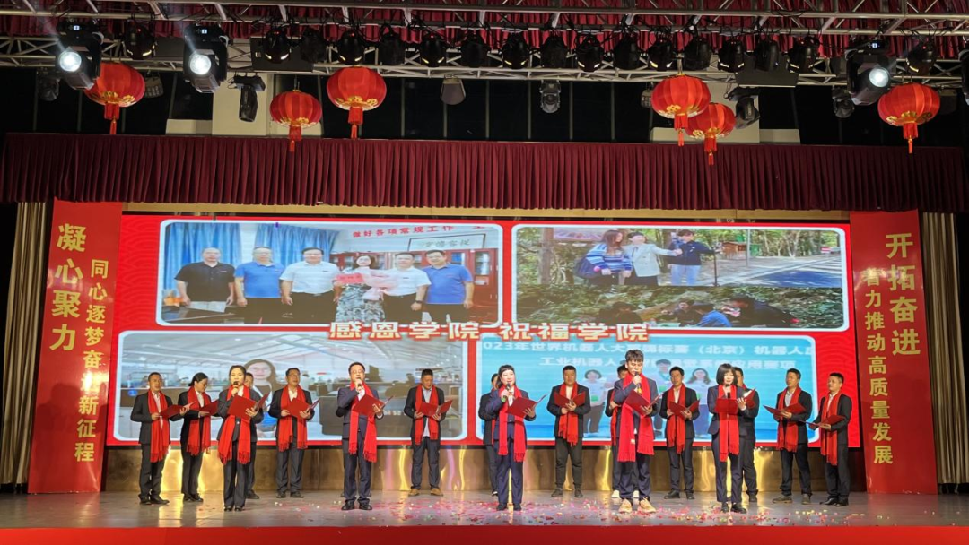 学院党委副书记、院长叶世森致新春贺词,他指出,2023年,学院在党建引领、教育教学、民生工程、队伍建设、社会服务等方面取得一系列创新和突破。新征程承载新梦想,新起点孕育新希望。2024年是学院站在新的起点上乘势发展的奋进之年,希望全体教职工在习近平新时代中国特色社会主义思想指导下,踔厉奋发、笃行不怠,全力推进学院高质量发展!