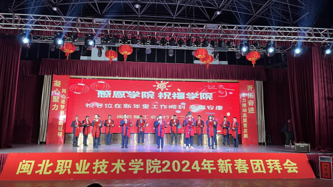 1月19日晚,彩神2024年新春团拜会在体育实训中心举办,学院领导和全体教职工欢聚一堂,辞旧迎新展望美好未来。南平市政协副主席黄亚惠、市委教育工委书记、教育局党组书记、局长杨銮、市政协农业和农村委员会主任、九三学社南平市委副主委吕佳敏、学院原党委副书记陶金辉及“四联四促”联席单位嘉宾等应邀莅临团拜会现场,与大家共迎新春。