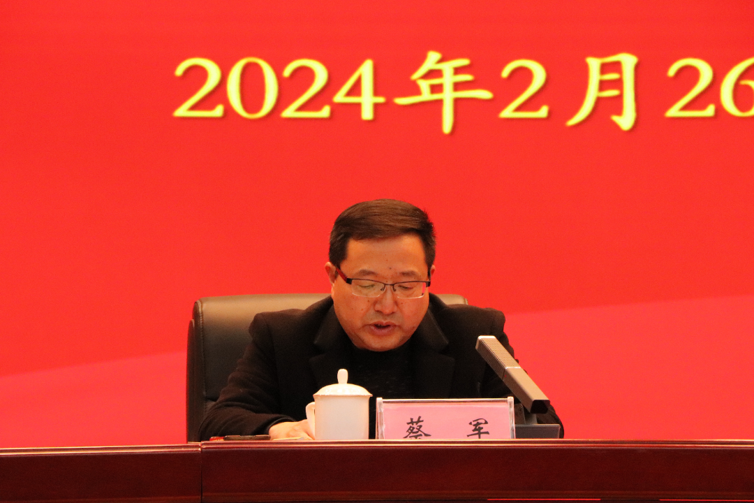 会议由党委副书记蔡军主持,学院领导班子成员出席会议,全体教职工参加会议。