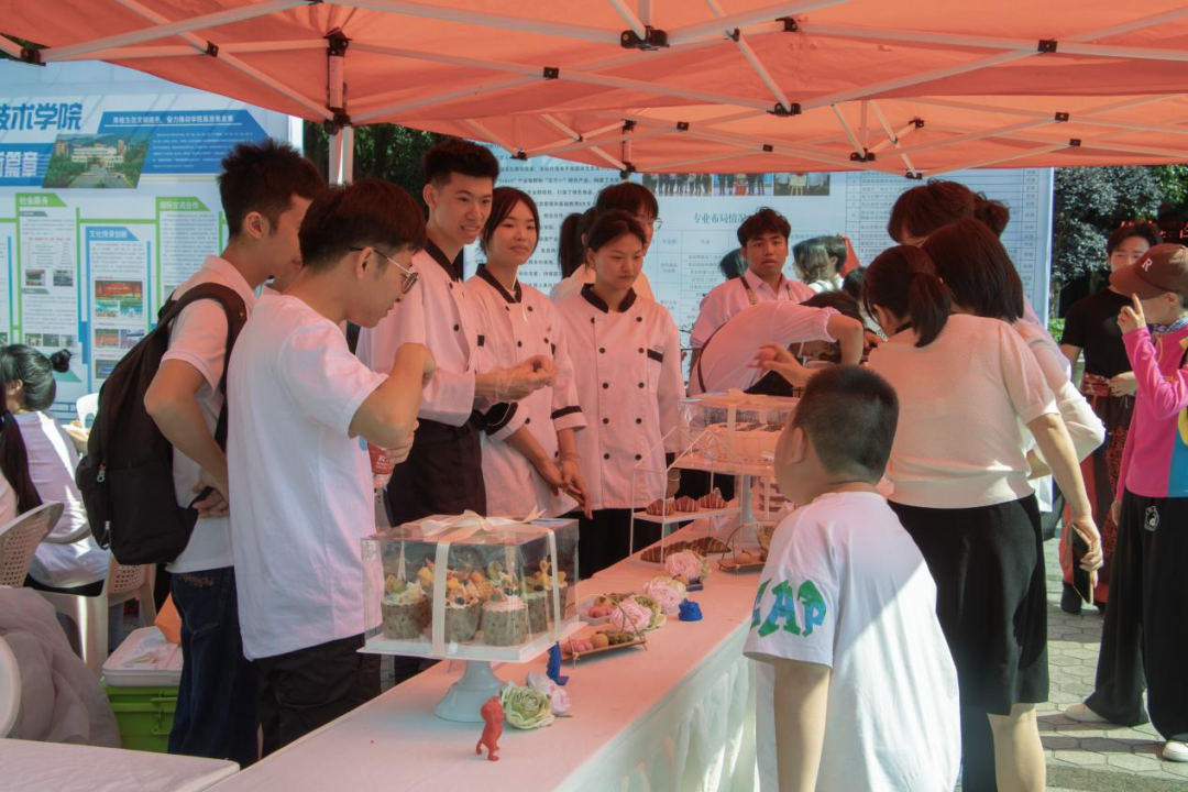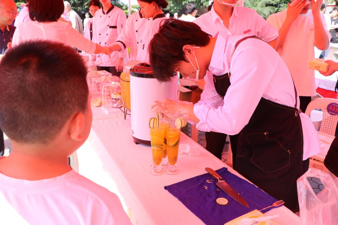 在技能项目展示区,我院食品系的“一茶糕点、一茶果饮”展示将幽幽茶香果香融入可口的糕点、饮品中,吸引了不少前来参观体验的市民。