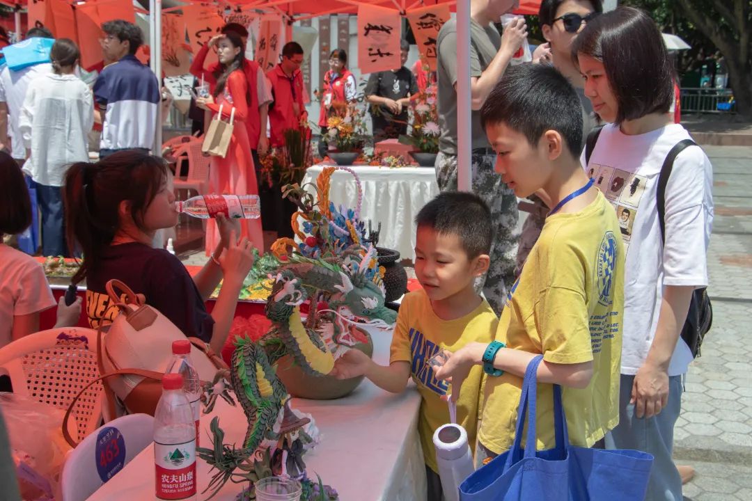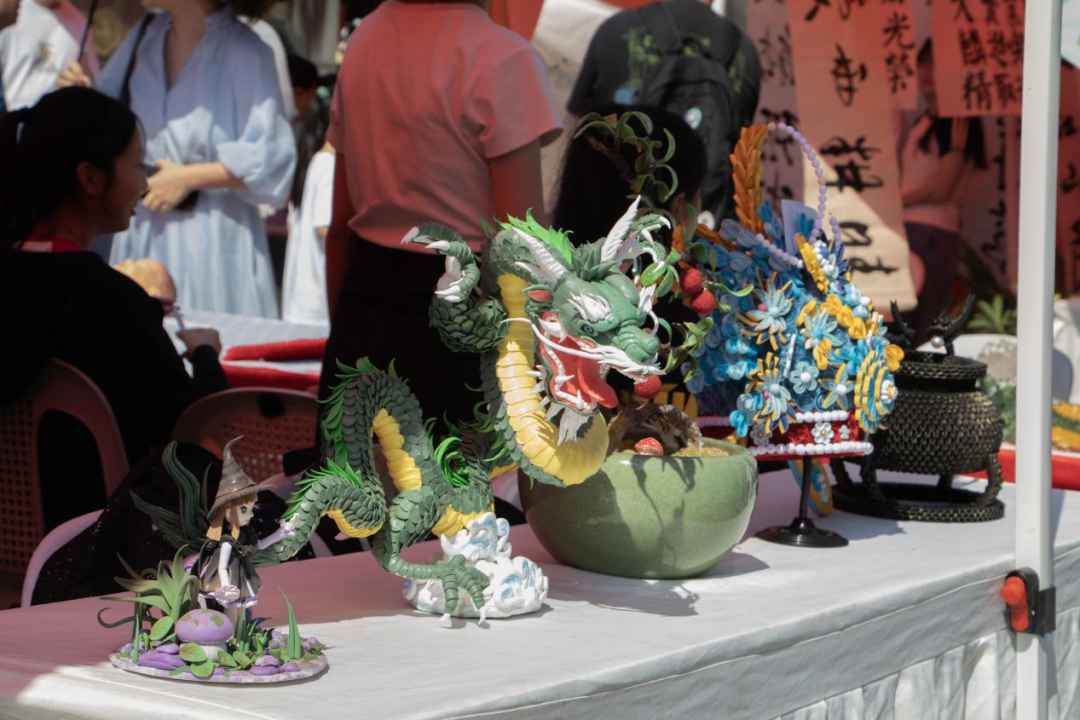 手工作品及婴幼儿照护展示区,教育系展出精美绝伦、赏心悦目的衍纸、超轻黏土、纸插接等手工作品,以及婴幼儿托育服务与管理专业学生表演用心细致的婴幼儿抚触等职业技能。