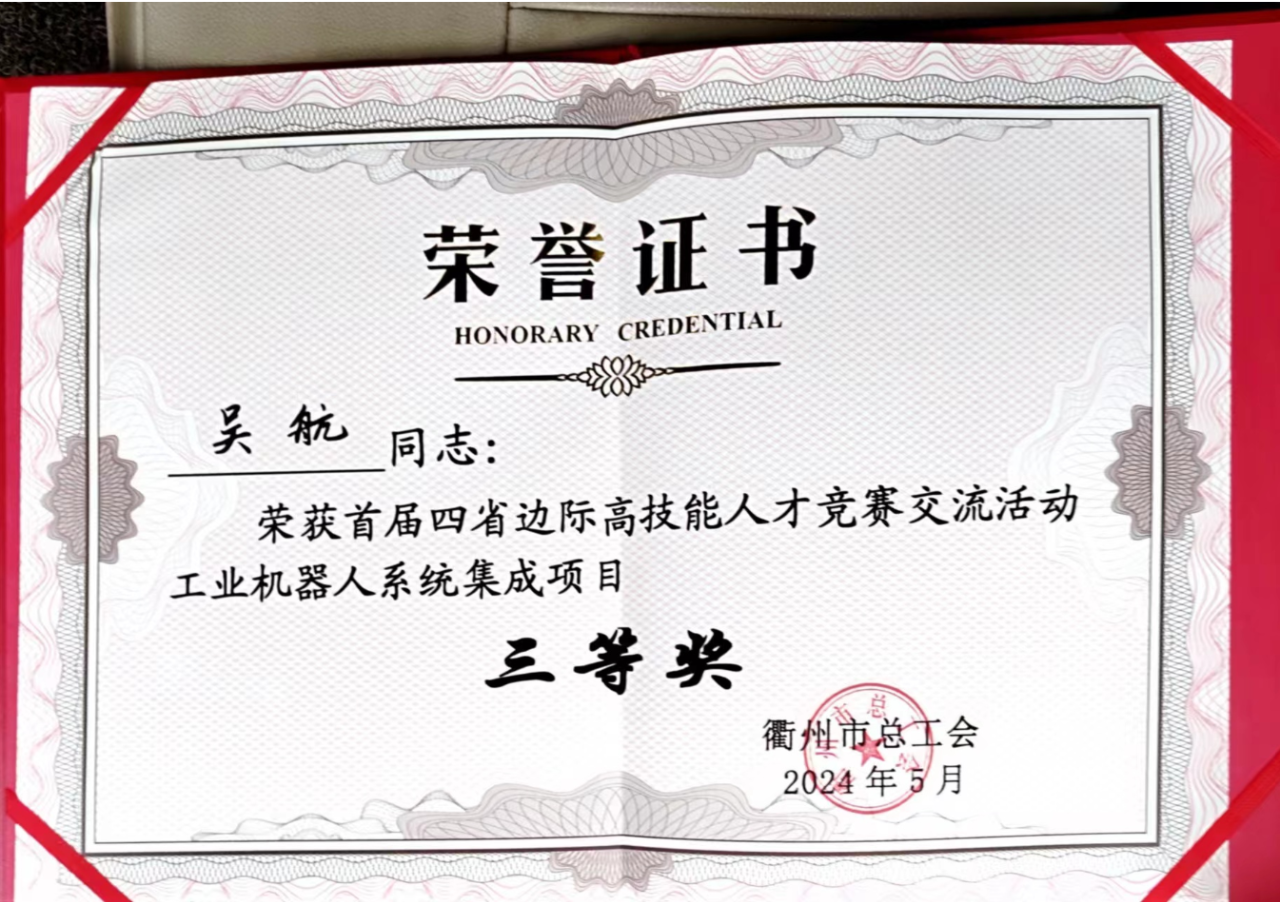 凭借扎实的专业技能,我院教师李旻在工业机器人系统集成赛项中荣获一等奖,吴航荣获三等奖。