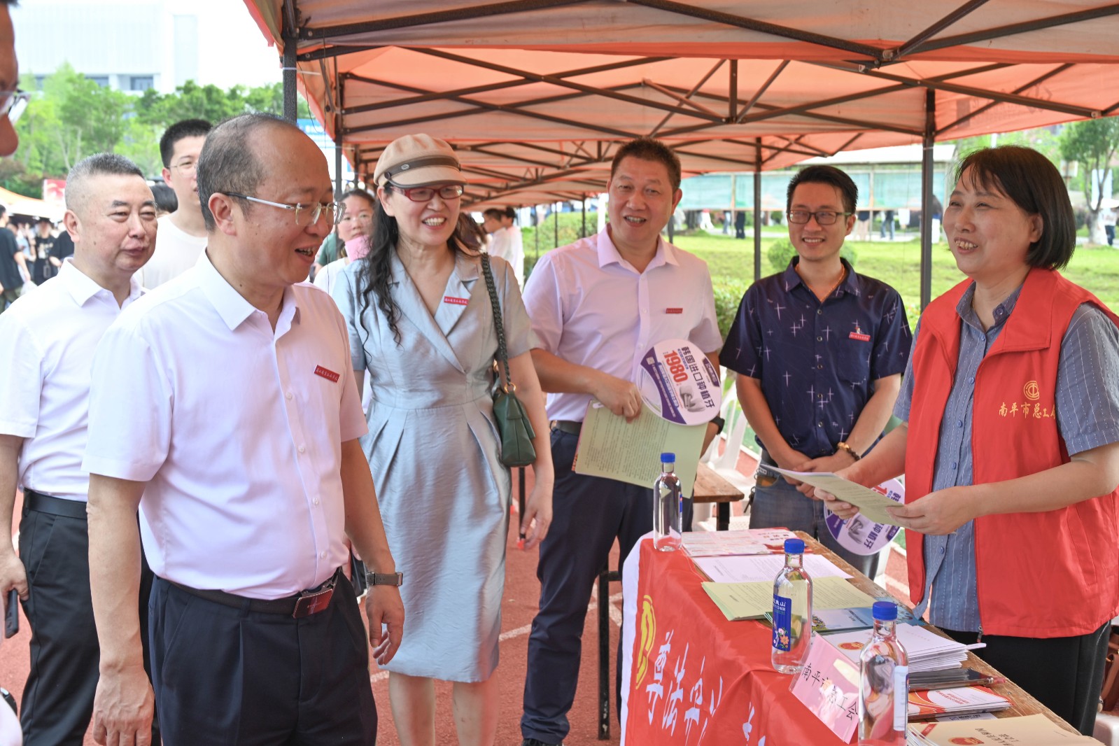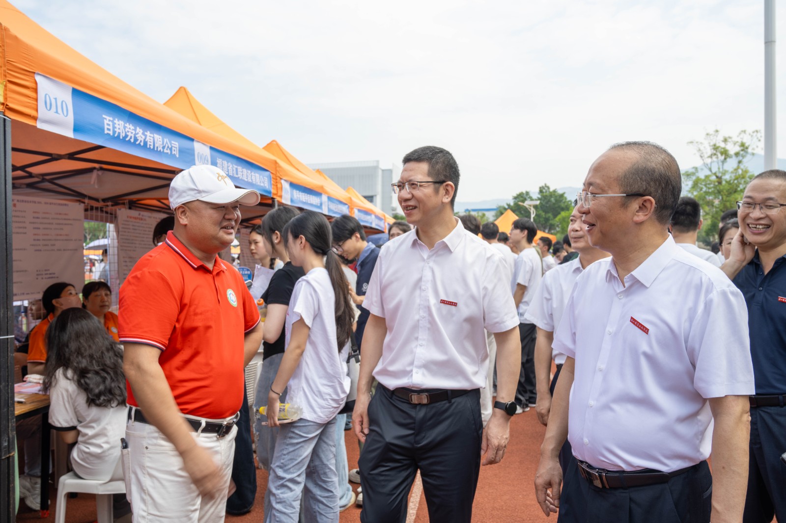 学院领导班子到招聘会现场,与招聘企业深入交流,了解企业岗位设置情况及人才需求情况,向企业推介我院毕业生,为毕业生争取更多就业机会,与毕业生们亲切交谈,询问他们的就业意向和求职进展🙅🏿♂️,鼓励毕业生们主动抓住就业良机,迈好人生关键一步。