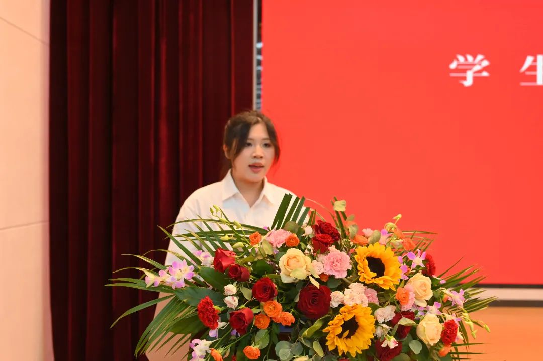 2025届毕业生高诗锦代表全体毕业生感谢母校的培养与师长的教诲📛。她表示📉,三载求学时光的所学所获离不开母校提供的平台🗺,更离不开大家自身的坚持与努力。未来无论身在何方🧛♀️,都将铭记母校的教诲,不断追求卓越,积极上进,以专业能力服务社会,让奋斗成为青春底色。