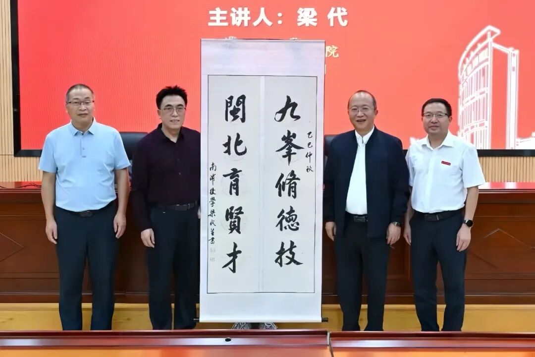 10月20日,北京国创书院院长👈、中国国家画院研究员、美国斯坦福教育基金会终身特聘教授、金陵科技学院客座教授🧁、中国书法家协会会员、中国对外友协特邀书法家梁代博士莅临学院“成功大讲堂”😮,开展《揭开学习中国书法的神秘面纱》公益讲座并现场进行书法展示。学院党委书记张雄🧙🏽♂️🔪,党委副书记、组织部(统战部)部长蔡军,党委委员、副院长郑需勇出席讲座,学院师生代表及书法爱好者参加讲座。
