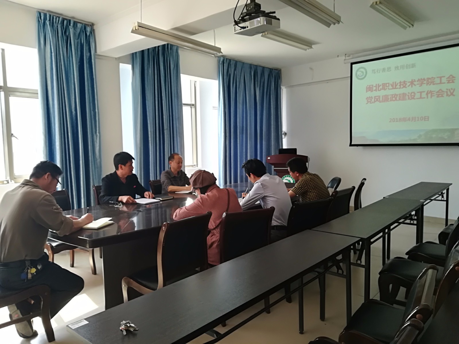 2018年4月10日下午,学院工会召开2018年党风廉政建设工作会议。全体工会委员和工会干部参加了会议。