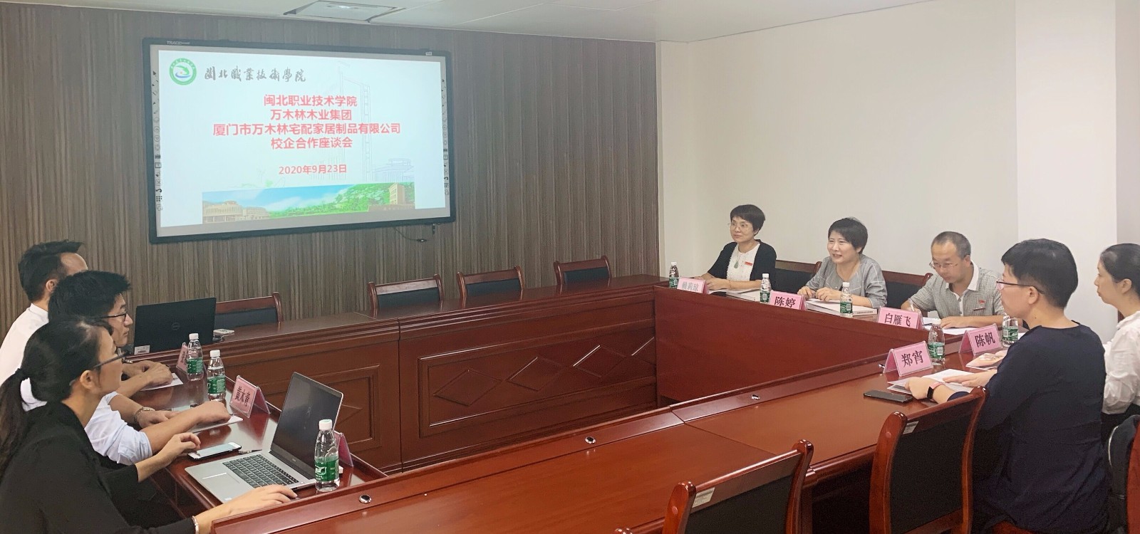 9月23日,万木林木业集团、厦门万林宅配家居制品有限公司营销总经理黄木青、市场总监张福全、人力资源部经理王文欣一行莅临我院与设计系建筑室内设计专业群团队教师就产教融合、校企合作、共同育人进行交流座谈。