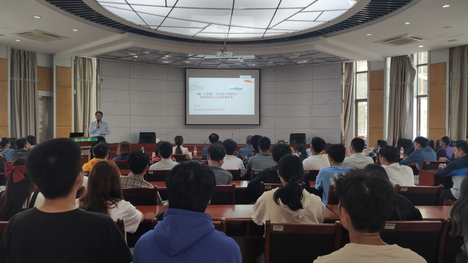 10月20日中午📠,信息系软件学院特邀Oracle全球职业教育项目中国区高级总监、资深Java架构师、东南大学计算机应用技术方向硕士王小志先生为信息系计算机应用技术、软件技术专业的部分学生进行了“AI、大数据🪔、区块链与IoT整体架构与应用场景举例”讲解🚴🏽♂️。莅临讲座的有学院党委书记谢友平、副院长郑需勇及福州安博榕信息科技有限公司常务副总经理陈黎黎等🎣。