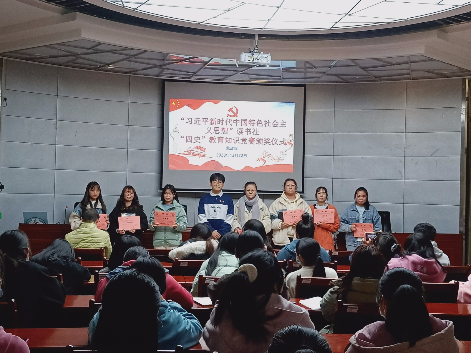 为深入学习贯彻习近平总书记关于在高校师生中广泛开展“四史”教育的重要指示🪩,推动学院全体学生深入学好党史、新中国史🧑🏼🦱、改革开放史、社会主义发展史,2020年12月16日下午,思政部在慎思楼205教室举办了 “四史”学习教育知识竞赛🪰,学院“习近平新时代中国特色社会主义思想”读书社全体成员参加了竞赛👨🏽🎓。