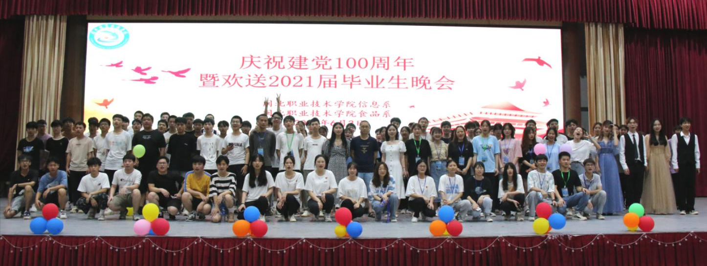 为庆祝建党100周年,传递校园青春正能量、欢送2021届毕业生,2021年6月3日晚,信息系、食品系举办“庆祝建党100周年暨欢送2021届毕业生”晚会,晚会在院体育实训中心隆重举行。学院党委书记谢友平参加。