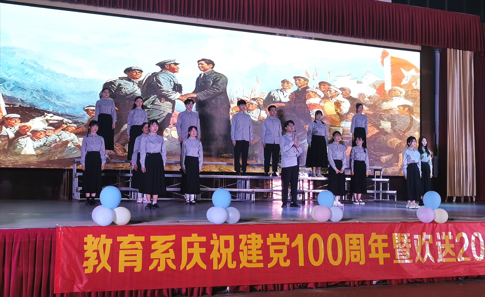 2021年6月9日晚7点30分,由教育系精心筹划的庆祝建党100周年暨欢送2021届毕业生文艺晚会在体育实训中心隆重举行。院领导谢友平、陶金辉、郑需勇、蔡军等莅临了本次晚会。