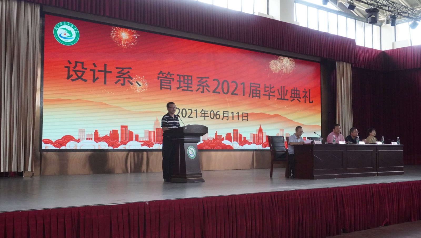 6月11日上午,彩神设计系和管理系2021年毕业典礼在体育实训中心举行,设计和管理系联合党总支书记詹茂光主持,彩神党委书记谢友平、副院长郑需勇、设计系兼管理系主任陈婷等领导出席。