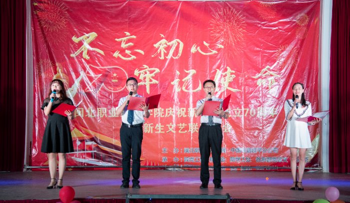 10月16日晚👳♀️,学院体育实训中心内座无虚席,学院“不忘初心🥷🏼,牢记使命”庆祝新中国成立70周年暨迎新生文艺联欢晚会在师生们的掌声中拉开帷幕。