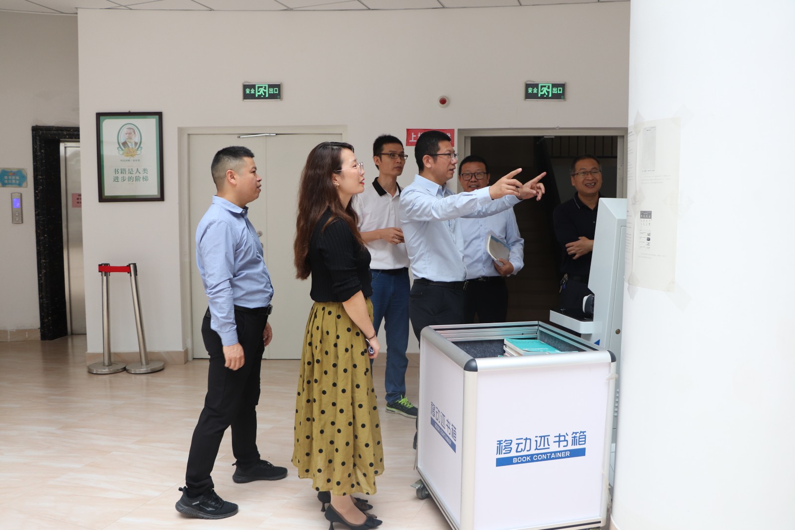 叶世森一行走访了图书馆的每个书库,了解每个书库藏书情况,查看图书整理、书库导览、智慧图书馆的设施建设等情况。