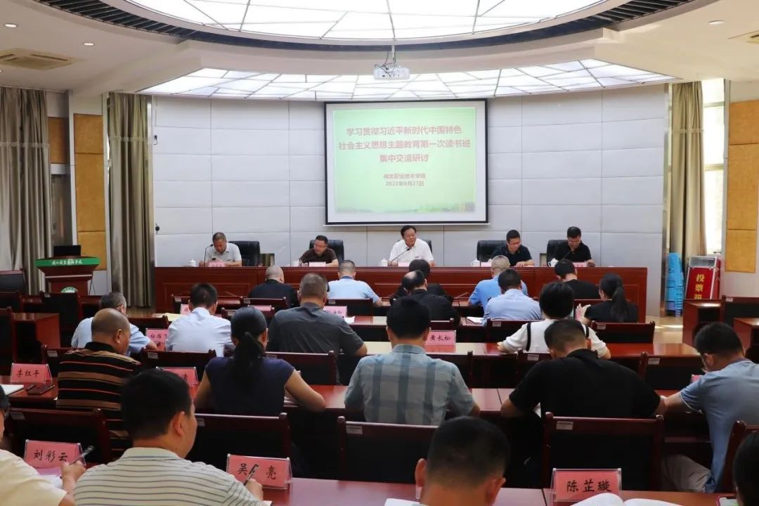 学院把“师生满意不满意”作为主题教育的根本评价标准,把理论学习同调查研究、推动发展、检视整改贯通起来,以学铸魂,以学增智,以学正风,以学促干。将主题教育理论学习同学院“四联四促”党建工作机制、学院干部、人才工作、深化产教融合、服务乡村振兴等学院各项重点工作结合起来,开展集中学习研讨,突出“学思用贯通、知信行合一”,瞄准培养什么人、怎样培养人、为谁培养人的教育根本问题,教育引导学院全体党员干部通过主题教育理论学习将立德树人根本任务融入血脉、见之行动。