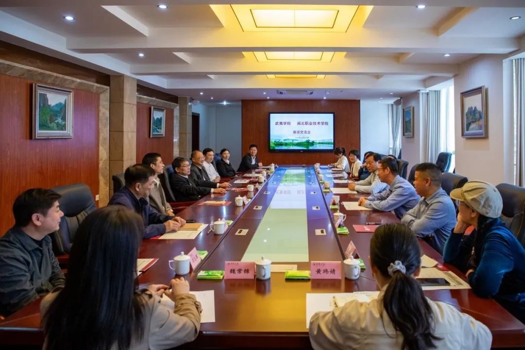 在武夷山职业学院,双方就专业规划和课程建设、人才培养、校企合作、产教融合等内容进行了深入的交流和研讨,表示愿进一步加强交流合作,共同坚持特色办学,立足闽北、服务闽北,主动对接产业发展需求,为服务闽北高质量发展贡献力量。调研组一行还实地参观了武职院的校园环境、校史馆、科技大楼、烹饪、茶艺、茶叶生产加工和审评等专业的教学实训室,详细了解办学特色、产教融合方面的情况。武夷山职业学院校领导邹琍琼、李海波、罗莹、游秀英等陪同调研。
