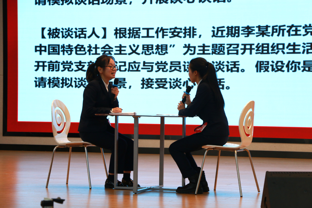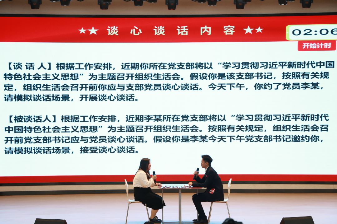在谈心谈话环节,各参赛队伍根据比赛题目模拟现实谈心谈话,从谈心谈话内容、方式方法、效果等方面考察选手能力🚙。