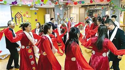 师生跳起藏族传统的锅庄舞