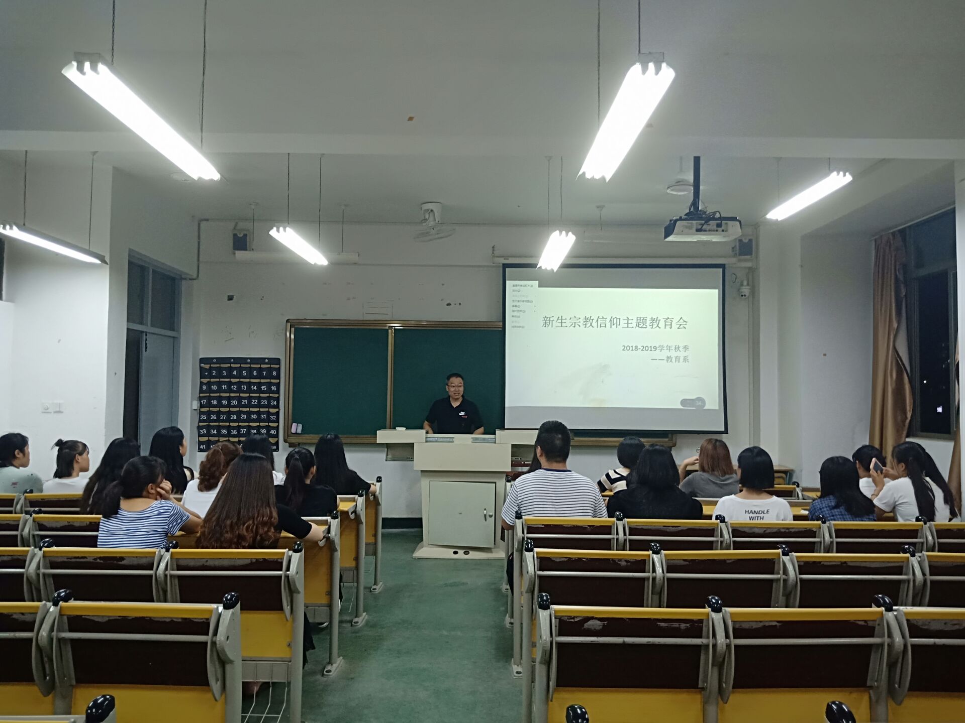 2018年9月15日晚7:00☑️,闽北职院教育系在5号教学楼304室召开新生宗教信仰主题座谈会🦻🏼。教育系总支鞠建恩书记、辅导员及学生代表共20余人参加了座谈会。