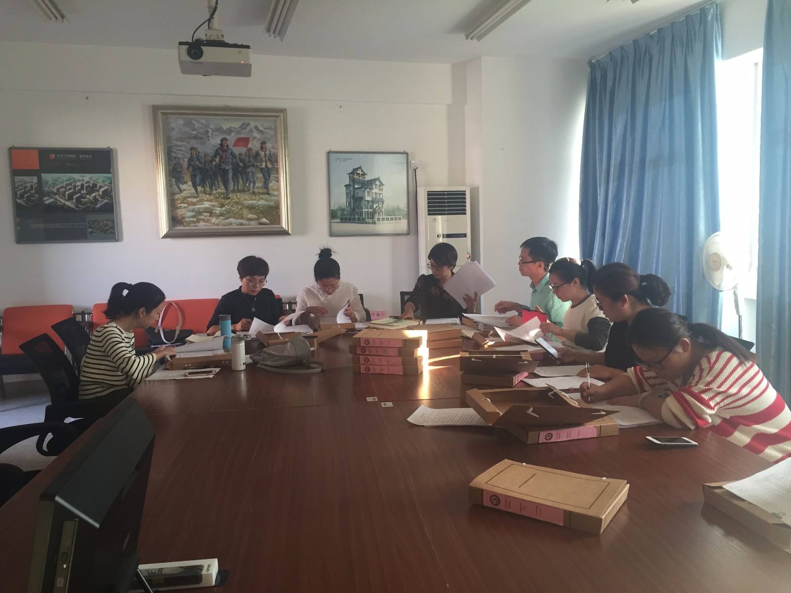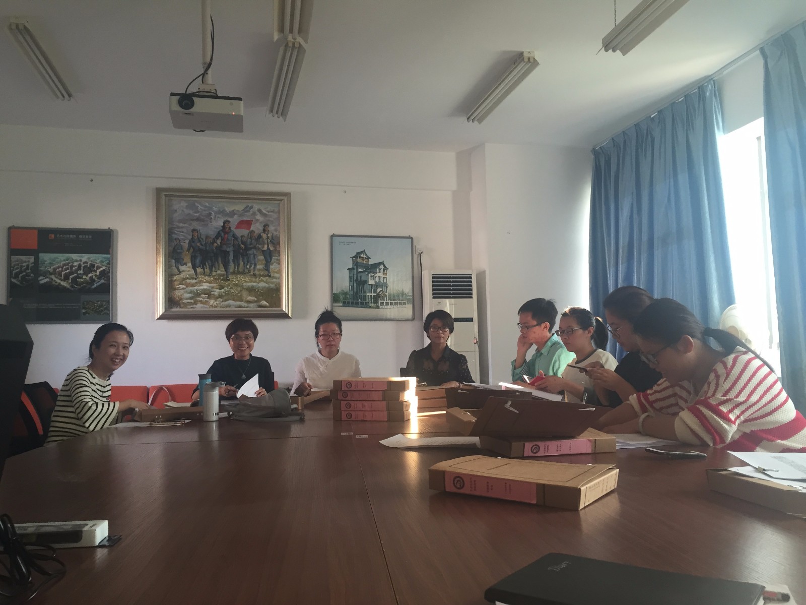 10月25日下午🙋🏼♀️➾,学前教育系主任张完英老师,带领负责专业剖析八大盒支撑材料收集的部分教师🛀🏻,带着前期收集好的八大盒材料,来到艺术传播系310会议室学习交流,艺术传播系参加交流的老师有赖莉琼🎯、郑宵和陈帆三位老师。
