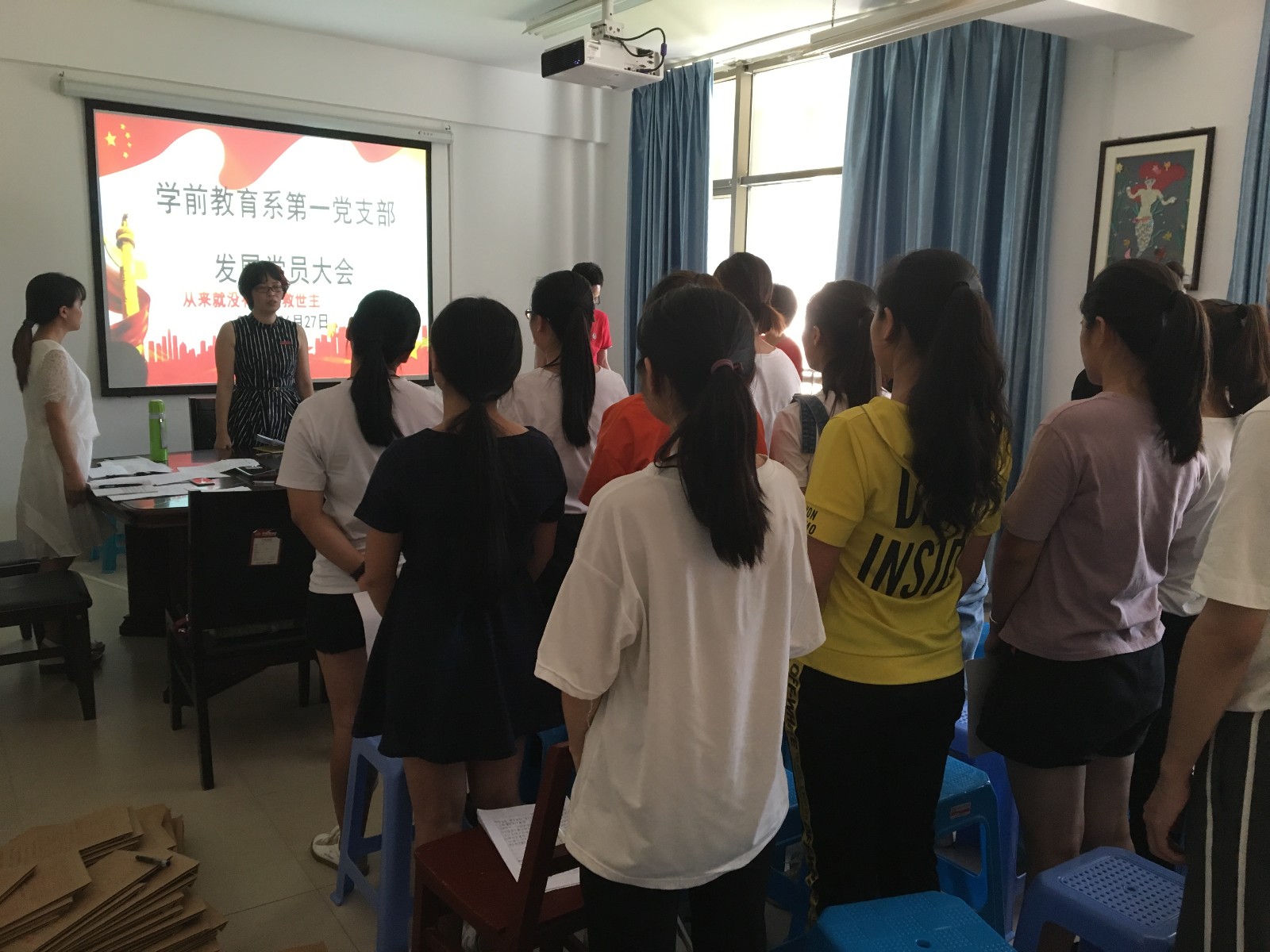 2018年6月27日下午,教育系第一党支部在行政楼204会议室召开发展党员大会🤦🏽♂️,专题讨论研究肖刘渊等十七位同志的入党问题。教育系第一党支部全体党员和2016级学生发展对象参加了此次会议,会议由教育系第一党支部书记阮学兰同志主持💮。