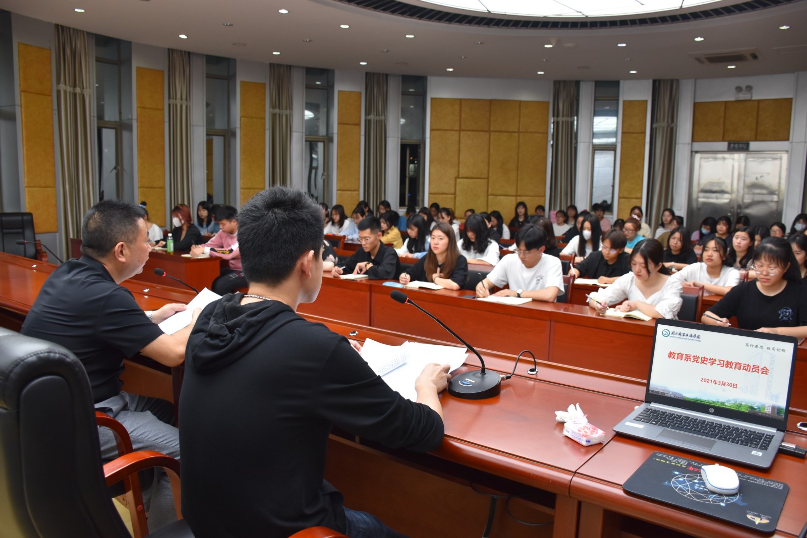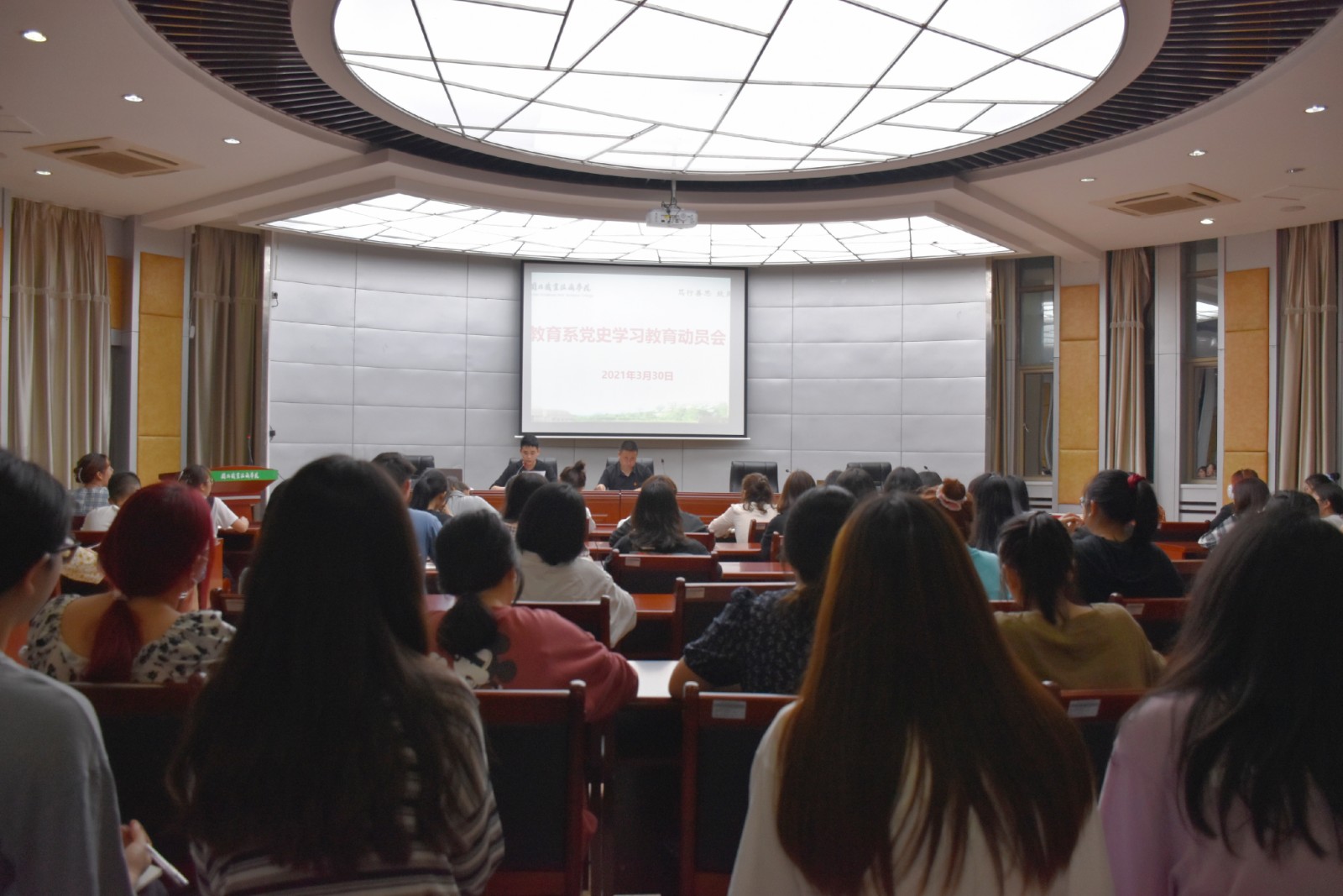 2021年3月30日,教育系党总支在行政楼一楼报告厅召开党史学习教育动员会,教育系辅导员、全体入党积极分子参加了会议。教育系党总支书记李清龙同志出席会议,会议由谢资强同志主持。