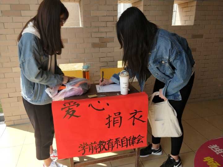 学前教育系自律会于2018年3月13日至2018年3月17日在各宿舍楼下,开展“衣往情深,爱心随行”捐衣活动。本活动得到老师和同学们的大力支持,他们将闲置的衣服都捐献出来,以实际行动表达爱心。本次活动收到的衣服600余件,都已打包寄往南平市钢丝善行团爱心组织,由他们将这些衣服送给山区的贫困家庭,让贫困家庭能够感受到社会的温暖。