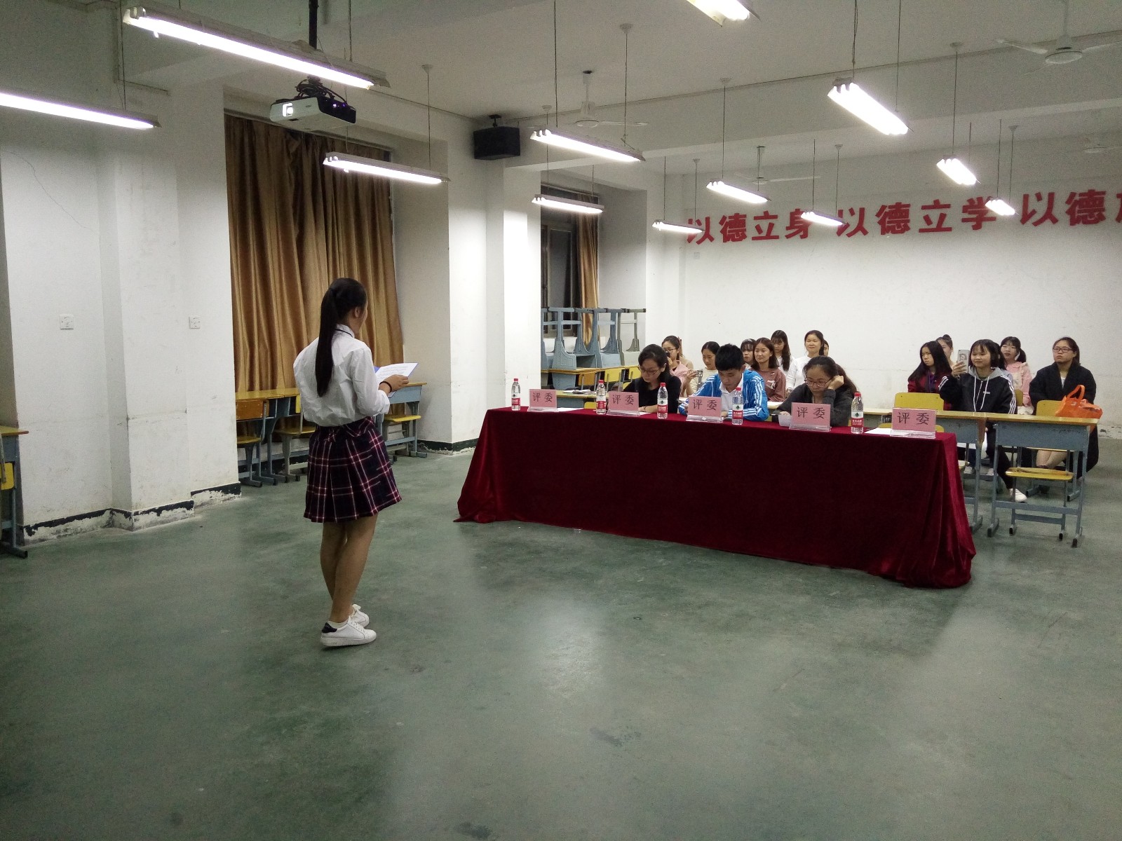 为弘扬中华优秀传统文化,增强民族自豪感和文化信心,进一步提高大学生人文素养,丰富校园文化氛围,扎实推进“书香校园”系列活动的健康发展,更好学习贯彻落实十九大精神,我系于2017年11月9日晚19:30,在教学楼104室,组织进行了“歌颂传统文化,传承中华文明”经典诵读比赛。经过初赛的选拔,共有10名学生进入到了今晚的决赛。