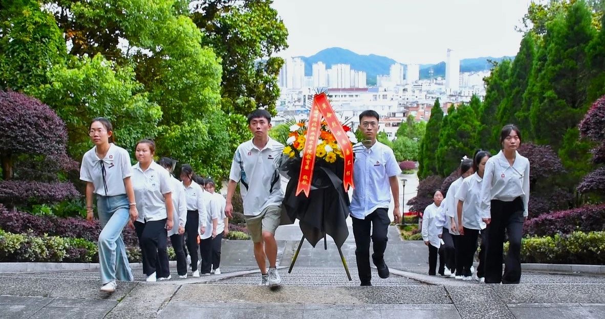 埋骨何须桑梓地,人生何处不青山。实践队队伍在“革命烈士英雄纪念碑”前肃穆站立,敬献花篮,并向长眠于此的革命烈士们默哀。